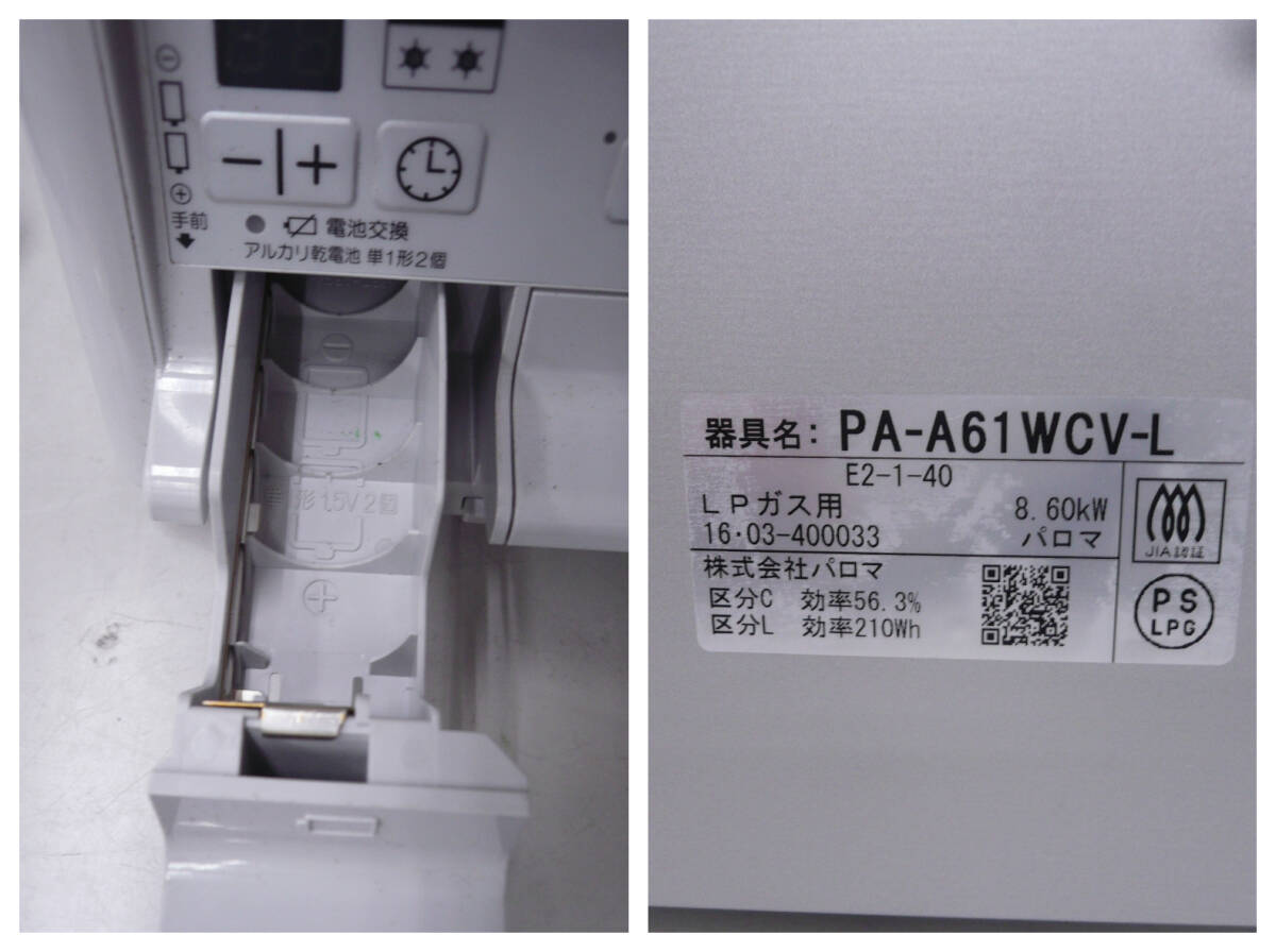 【商 品】   パロマ LPガス用 ガスコンロ PA-A61WCV-L  2016年製