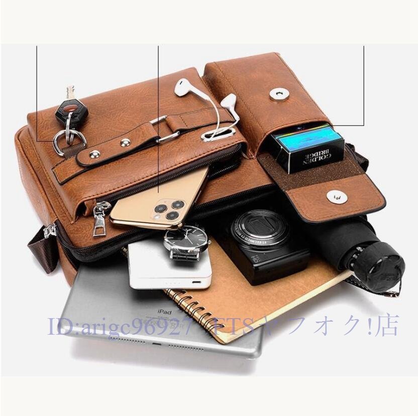 A6741★新品ショルダーバッグ メンズ 大容量 斜めがけ メッセンジャーバッグ レザー 収納 手提げ式バッグ 多機能 通勤 出張 就職活動