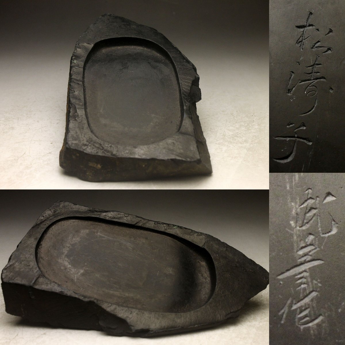 【余韻】 硯 硯匠 武峯作 龍渓硯 『松清子』 書道具 骨董品 すずり 古硯<同梱可>