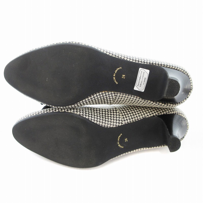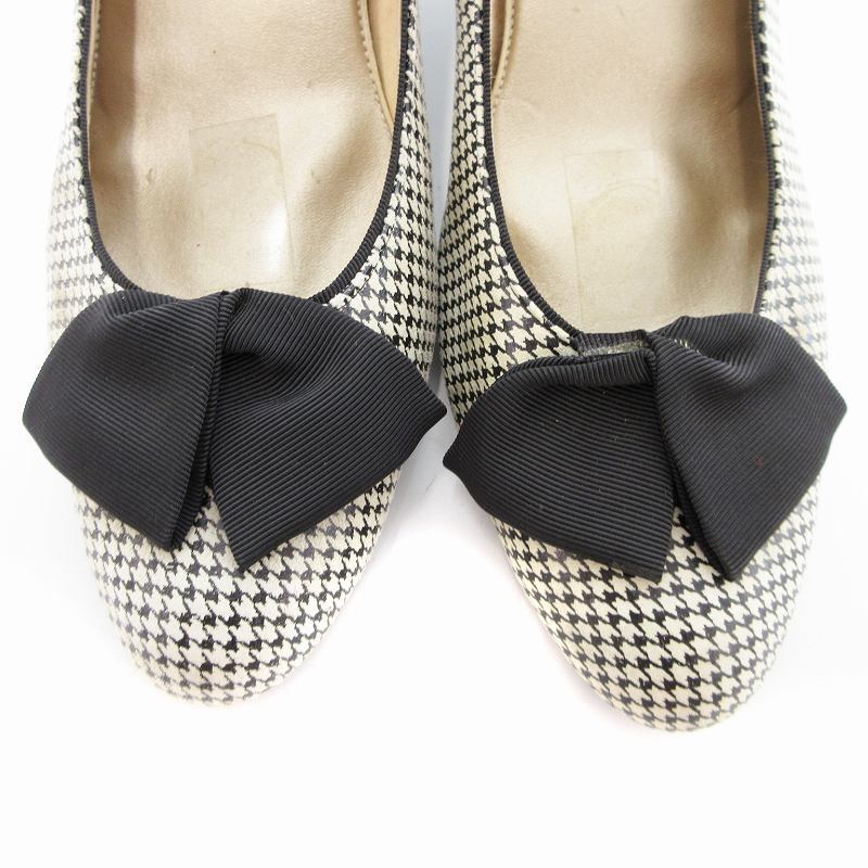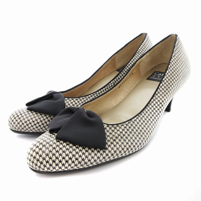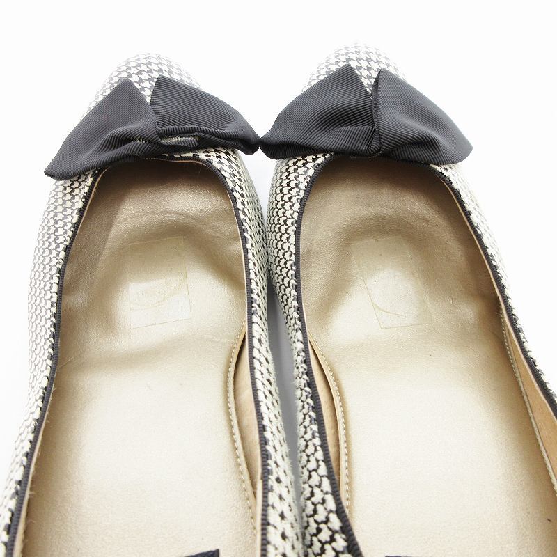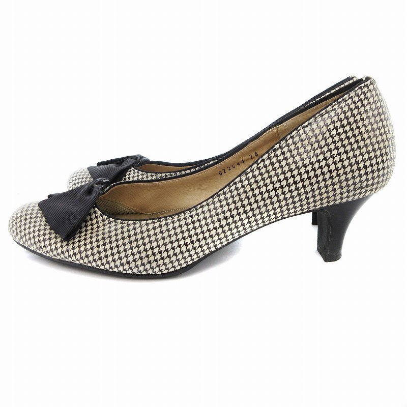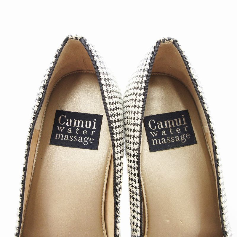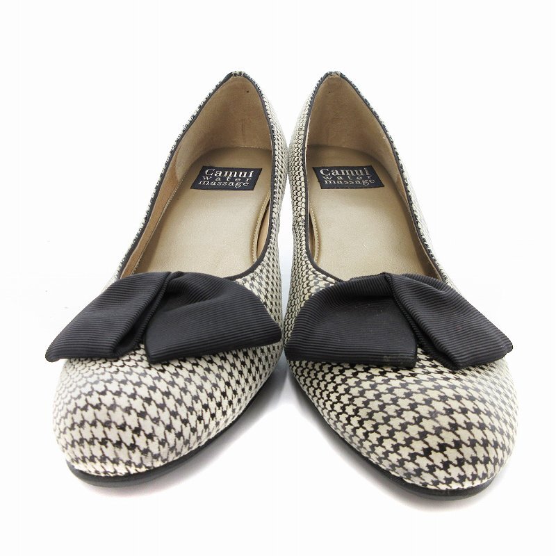 カムイウォーターマッサージ Camui Water Massage パンプス リボン 千鳥柄 レザー 24cm ベージュ /JS レディース