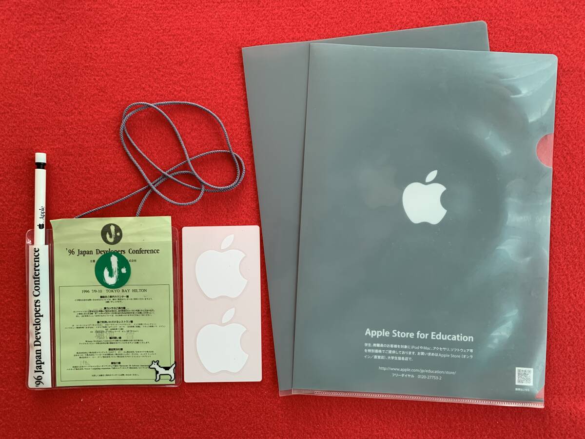 ■2非売品でレアなアップルコンピュータJapan Developers Conference 入館証、アップルシャープペン、クリアファイル、アップルステッカー