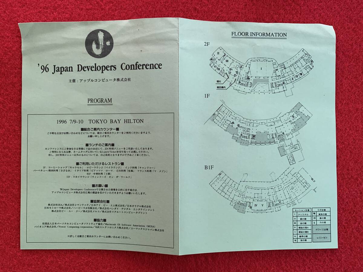1996年のJDCでは、アップルが日本の開発者向けに初めて公式ホームページを開設したことも印刷物で告知されており、インターネット黎明期の重要な発表の場となりました。