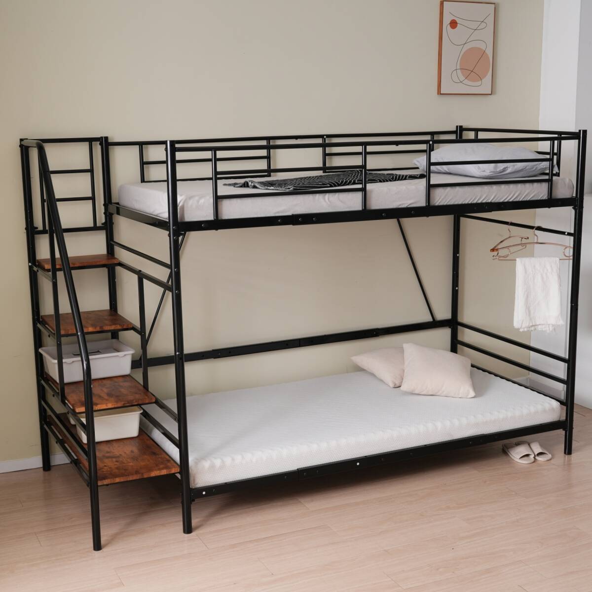 S ロフトベッド 階段付き S パイプベッド シングル 収納 スチール 耐震 ベッド シングル パイプベッドフレームのみ【Sシングル】