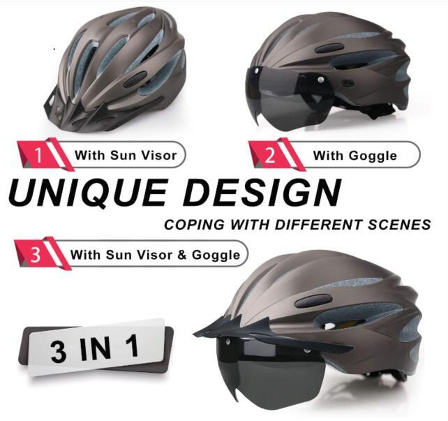 自転車 ヘルメット 大人用 CPSC/CE安全基準認証 電動自転車 ヘルメット 57-62cm ゴーグル バイザー付 軽量 Lサイズ