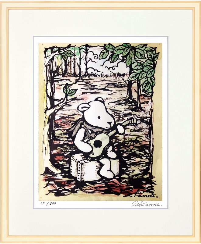 ジークレー版画 額装絵画 KANNA 「クマさんギター」 四ッ切
