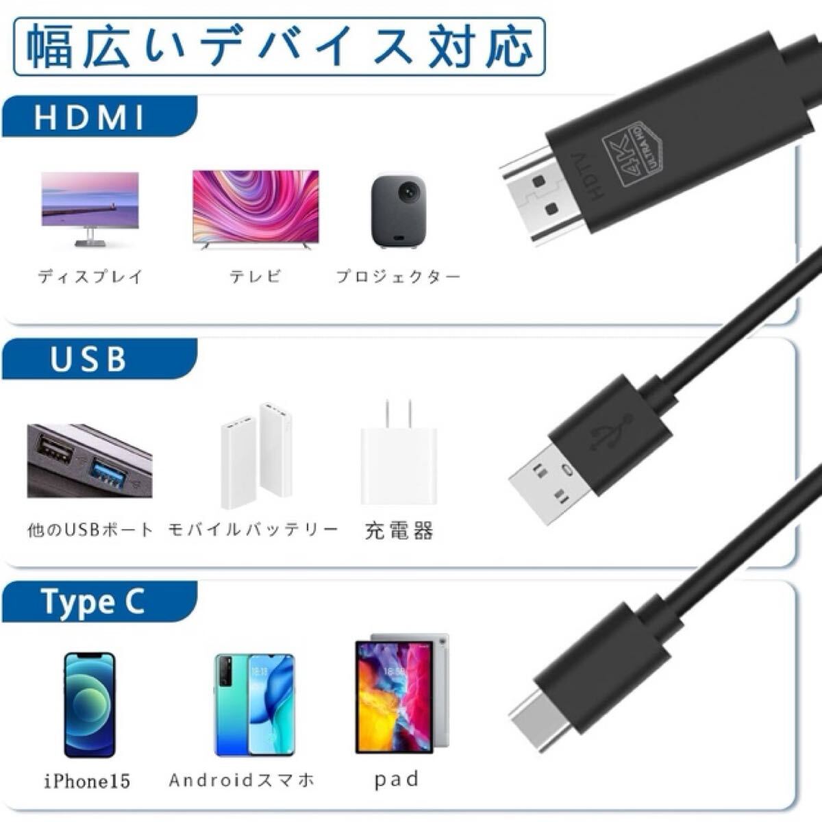 【操作簡単 - 設定不要】2024最新バージョンhdmi スマホ 変換ケーブルにより、複雑な設定操作が不要、インターネット環境や第三者アプリ、ドライバを必要とせず、挿すだけですぐに携帯の画面をTVやプロジェクターなどの大画面に映します。自宅、オフィス、車、旅行先で便利なアシスタントとなること間違いなし。いつでもどこでもスマホの画面をテレビに映し家族と共有することができます。