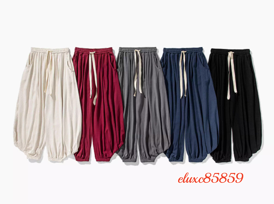 \夏新品★SALE/パンツ メンズ サルエルパンツ リネンパンツ ゆったり 無地 チノパン ワイドパンツ 大きいサイズ有り L ネイビー