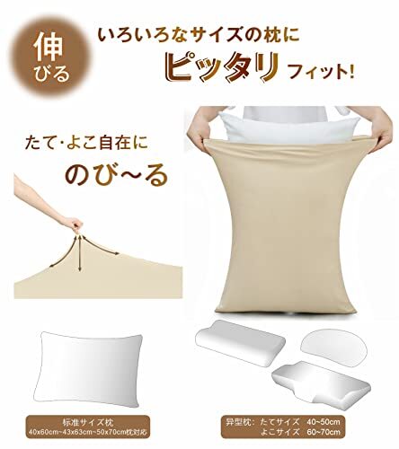 商品説明 | 【のびのびまくらカバー】このピローケースは 本体サイズ:約43×約63?。約40×60?~約43×63?~約50×70?の枕にも対応できます。弾力性が高いので 、様々なまくらや異形枕などにも使用できます。組成:ポリエステル 90% ポリウレタン 10%梱包内容: まくらカバー×2。 【四季兼用】のびのび生地の面は、とても柔らかくて四季兼用できます。オールシーズン ピローケース。年間通して頼れる1枚です。 【さまざまな枕にフィット!】伸縮性がありグーンと伸びるので、様々な素材や形の枕にもぴったりフィットします! 付け外しがとても簡単です 【抗菌防臭・防ダニ加工】汗の量が多い方にもオススメな枕カバーです。優れた抗菌防臭効果で細菌の増殖を抑制し、防臭効果を発揮します。 嫌なダニを寄せ付けにくい。 【丸洗い洗濯OK】ご家庭で気軽にお洗濯できるため、いつも清潔にお使いいただけます。独特なデザインで、取り出しやすいだけでなく、取り付けも便利になり、手洗いも洗濯機も洗います。色褪せにくい、型崩れが起きにくい。洗濯ネットをご使用ださい。