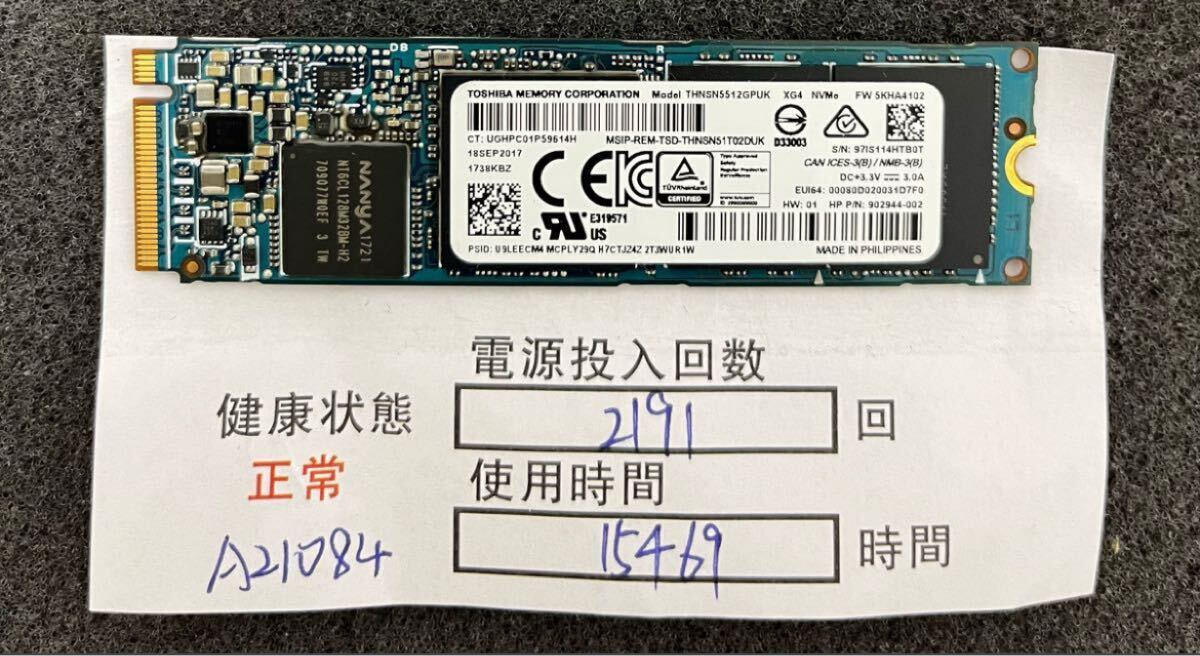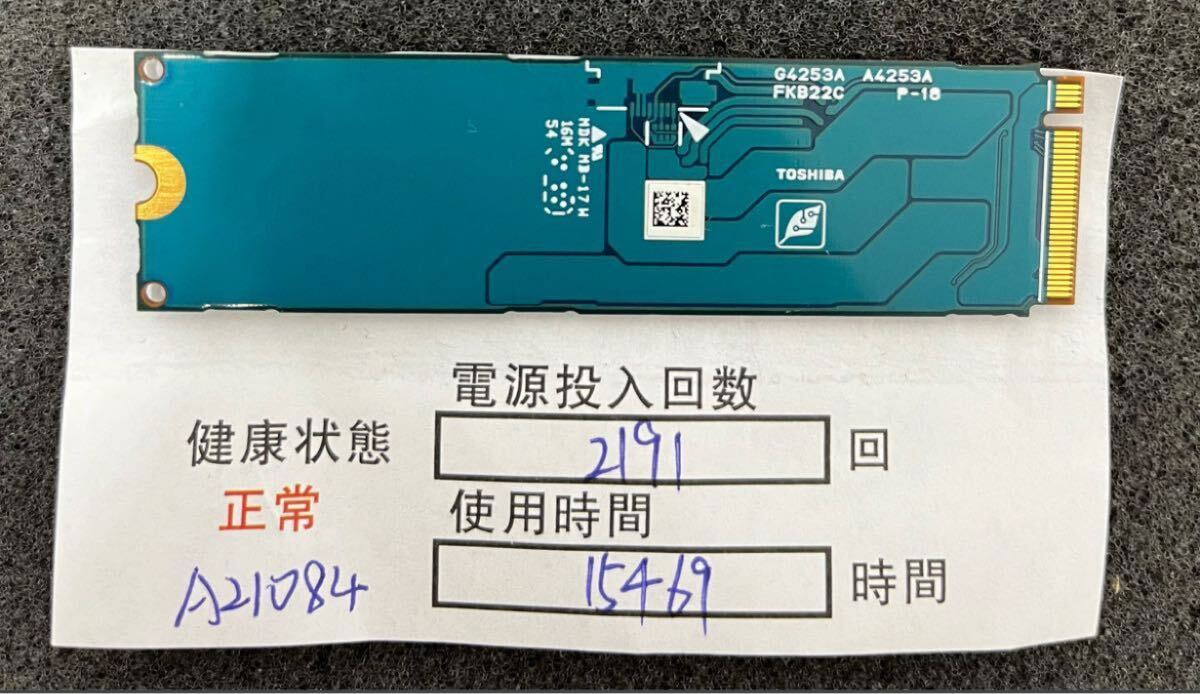 AR21084/中古品/NVME 2280 SSD/TOSHIBA/512GB/動作確認済み/返品返金対応/納品書発行可(商品説明文ご確認下さい)