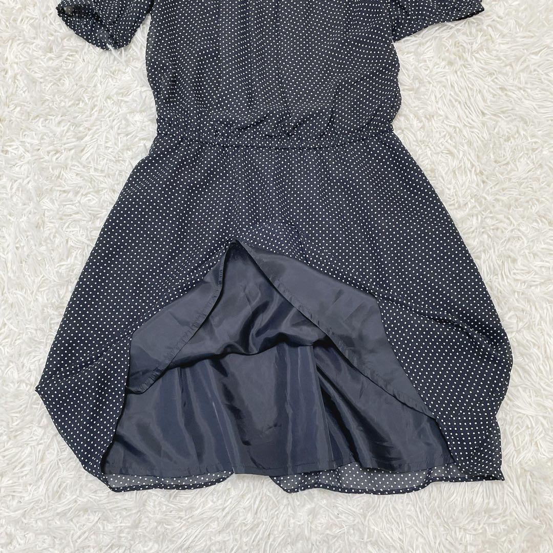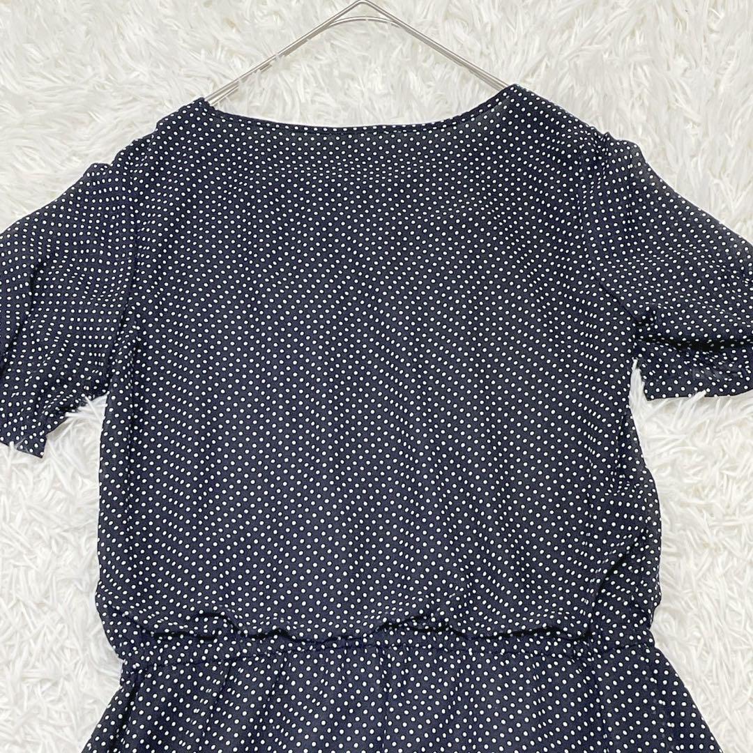 『グレイド東京スタイル』 (9) ドット柄半袖フレアワンピース 膝丈 デート 紺