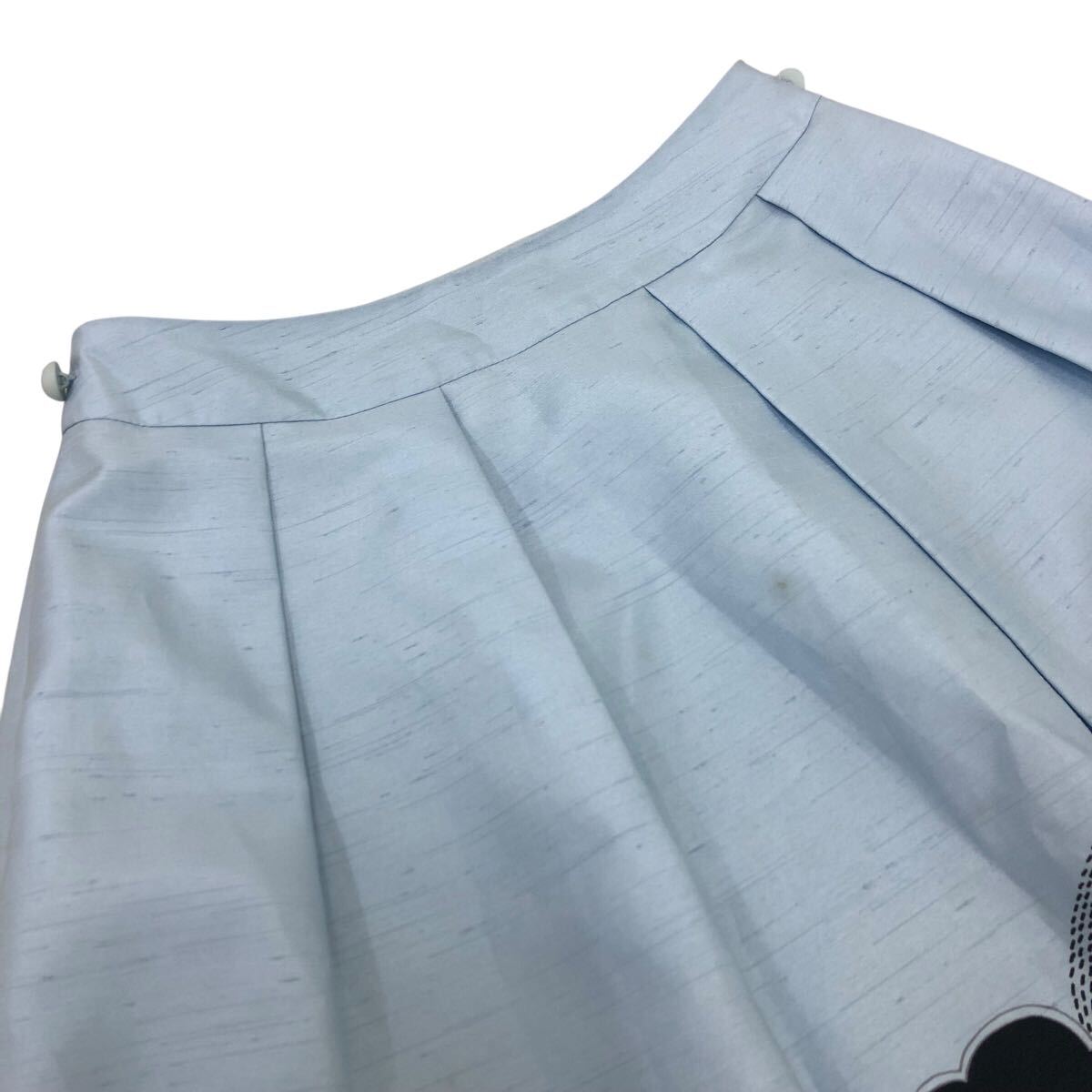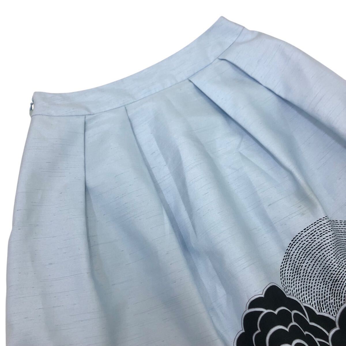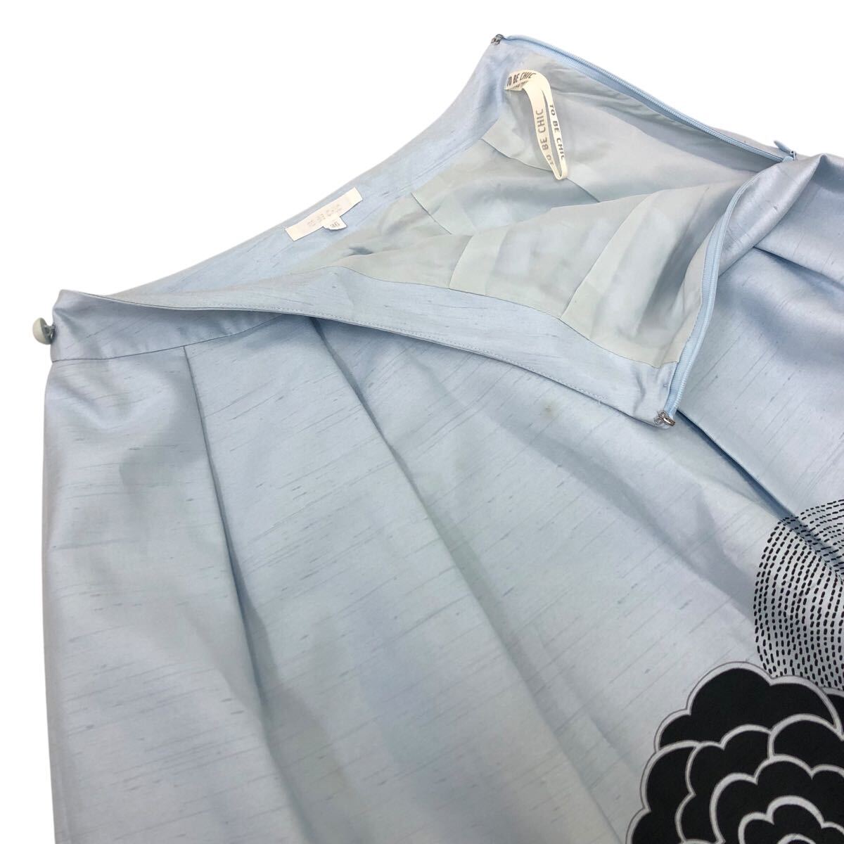 Nm308-4 TO BE CHIC トゥービーシック 裾 花柄 タック フレアスカート スカート シャンタン生地 ボトムス ライトブルー レディース 36