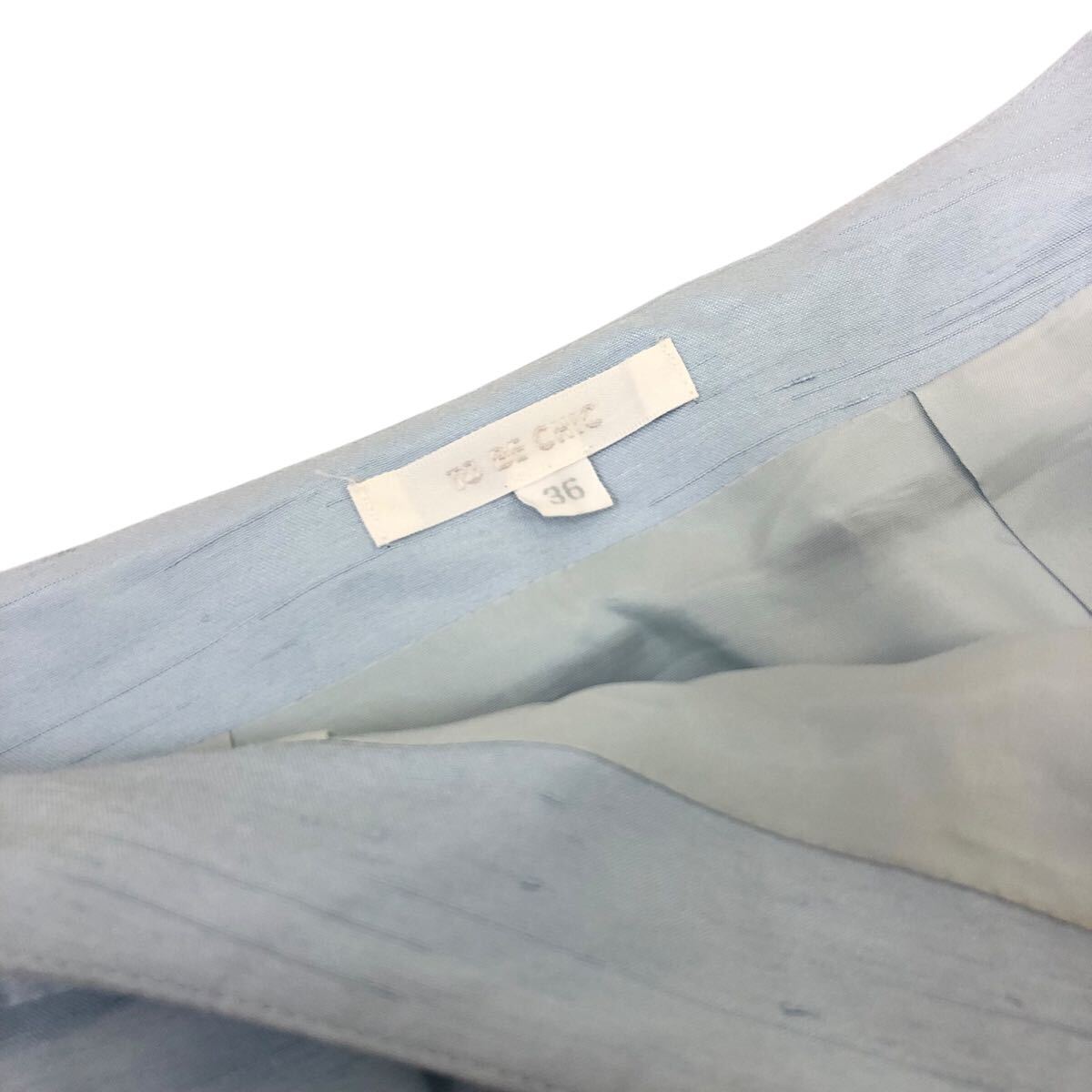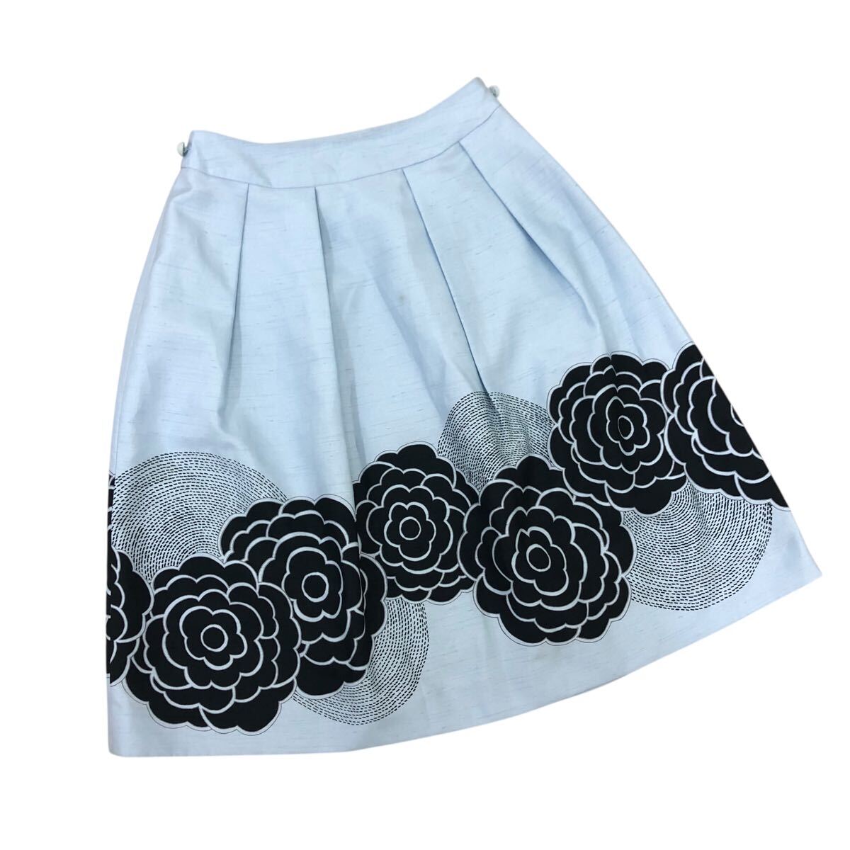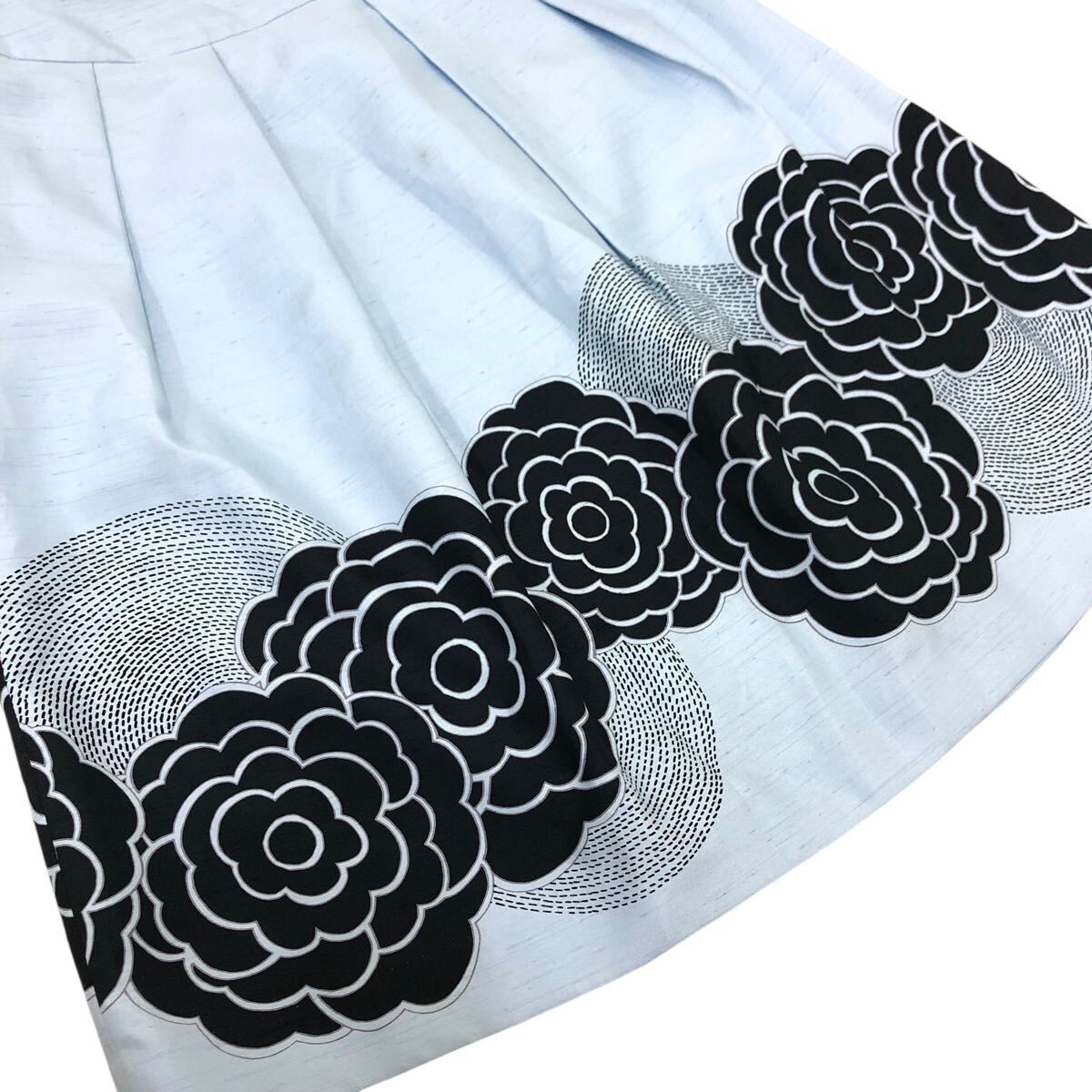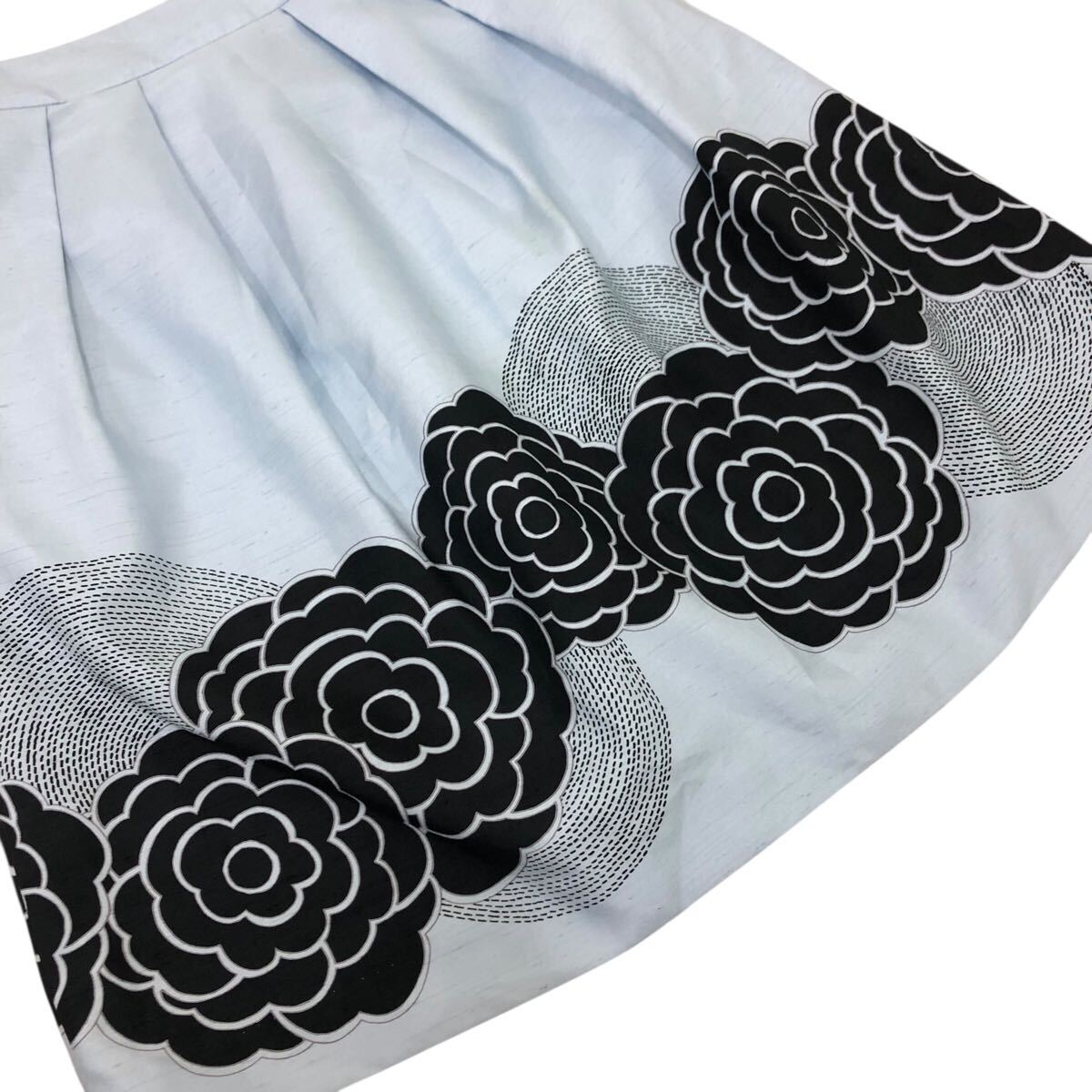 Nm308-4 TO BE CHIC トゥービーシック 裾 花柄 タック フレアスカート スカート シャンタン生地 ボトムス ライトブルー レディース 36
