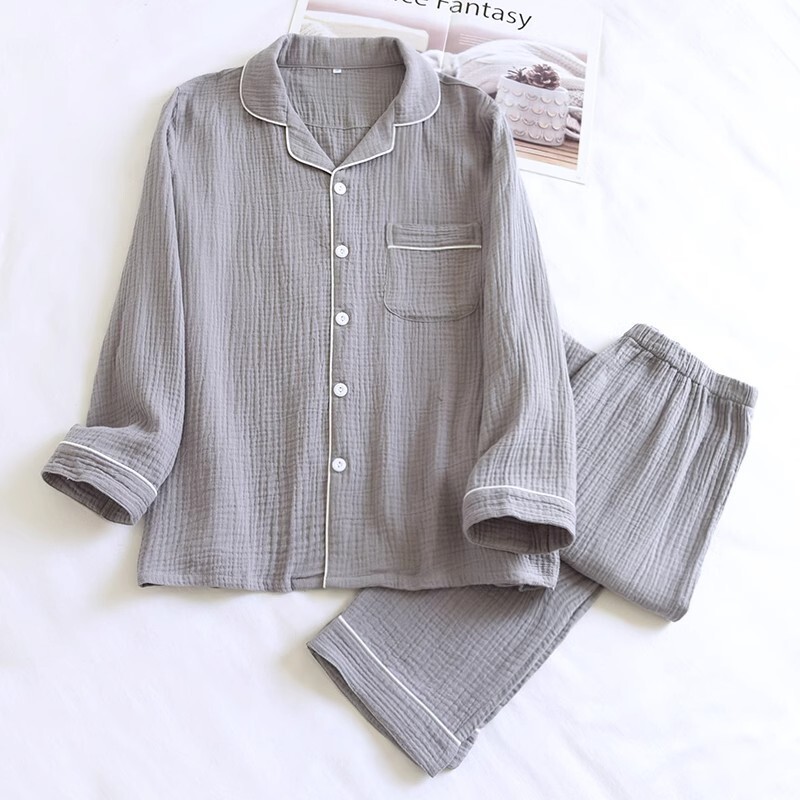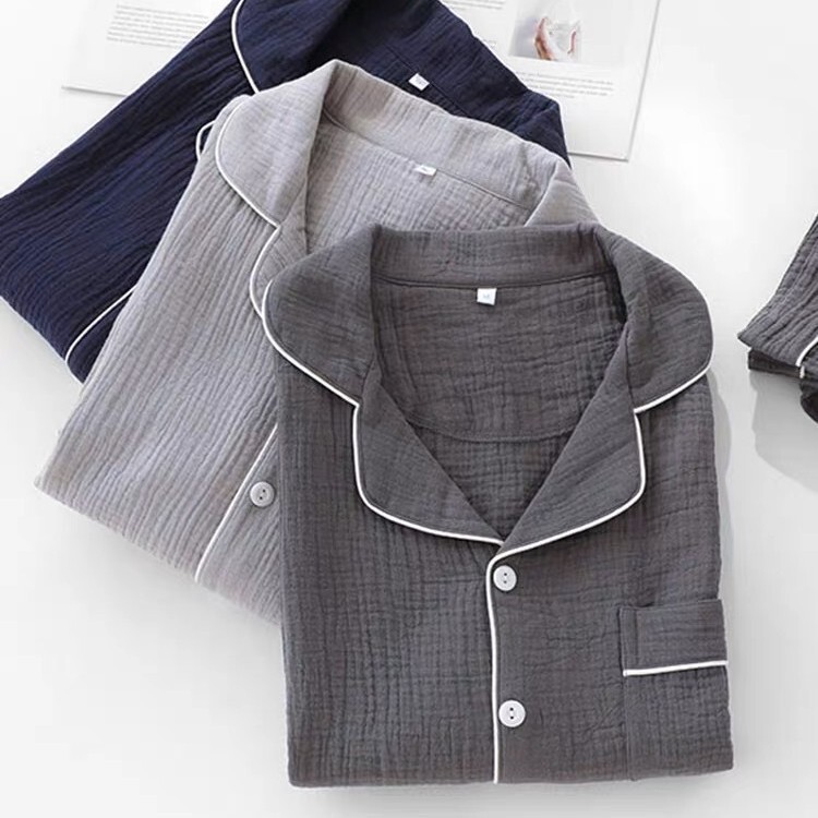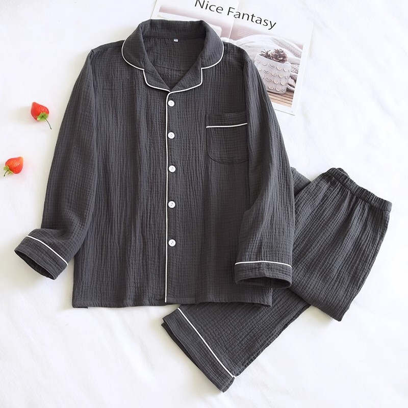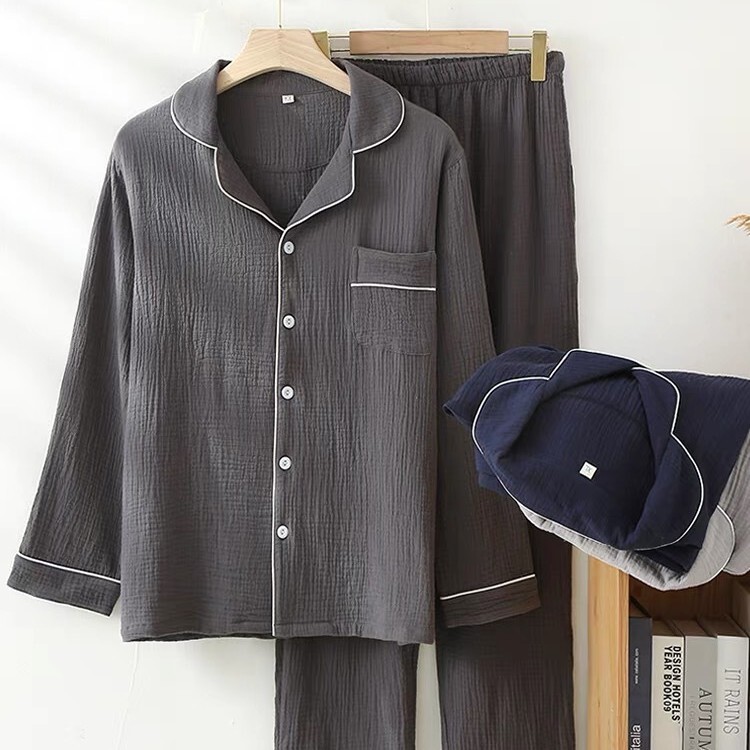 新入荷新品パジャマ メンズ 綿 上下セット 前開き 防寒 あったか ルームウェア エアコットン 長袖+長ズボン 3色/M~XXL選択/1点ダークグレー