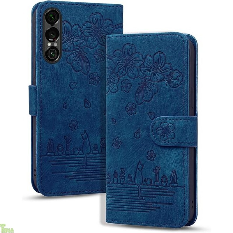 ブルー 手帳型 高品質 PUレザー ヴィンテージカラー エクスペリア Xperia 1 VII 保護 財布型 スタンド機能 カード収納 ケース カバー
