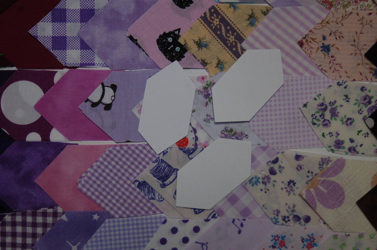 パッチワーク用細長六角形出来上がりサイズ22㎜に裁断してます。