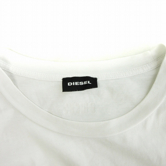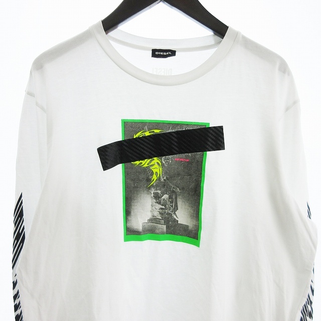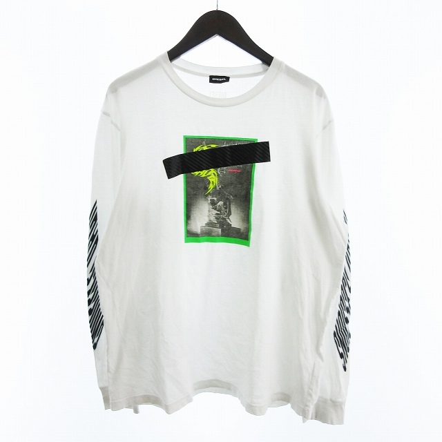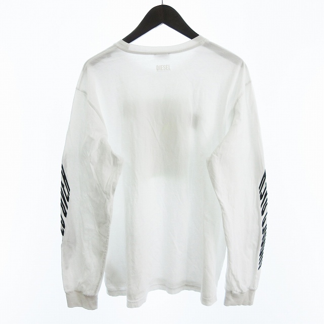 ディーゼル DIESEL Tシャツ カットソー 長袖 プリント コットン 白 ホワイト XL メンズ