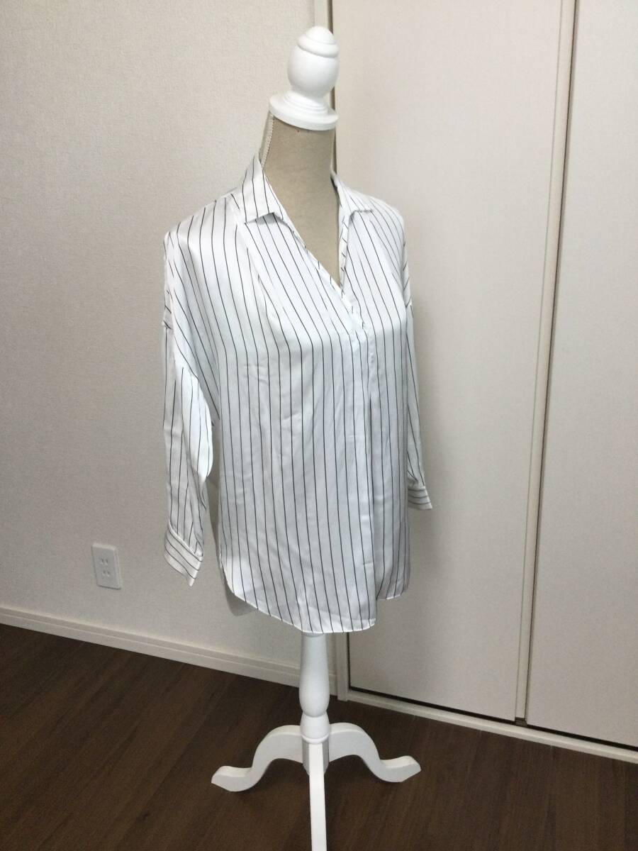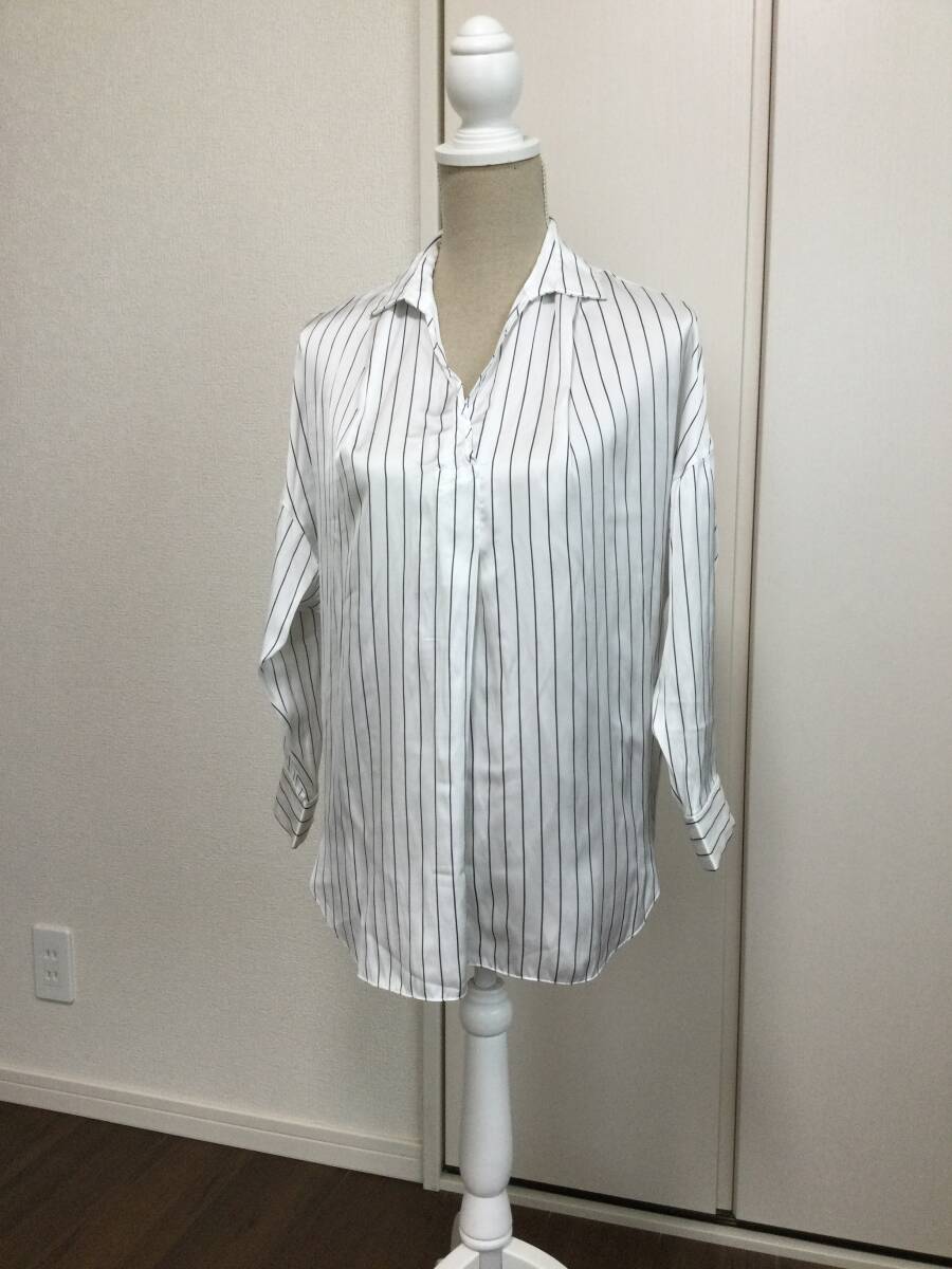 ★ COMME CA ISMコムサイズム★サテン生地ぽいストライプブラウス★