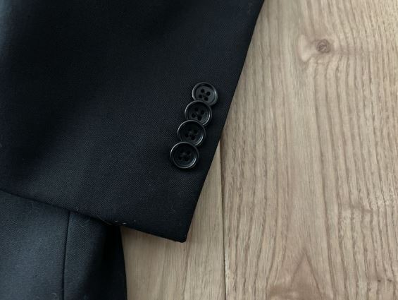 コムサ・メンのブラックスーツをビジネス向けの素材でつくりました」