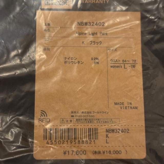 ザノースフェイス ノースフェイス アルパインライトパンツ NBW32402 K ブラック レディース ロングパンツ 長ズボン 登山