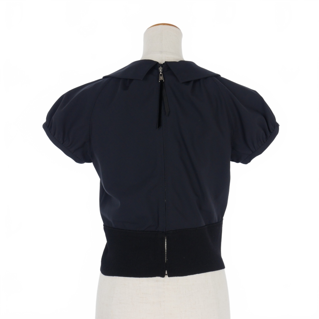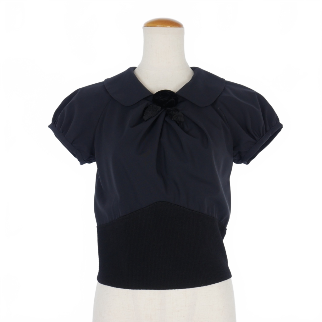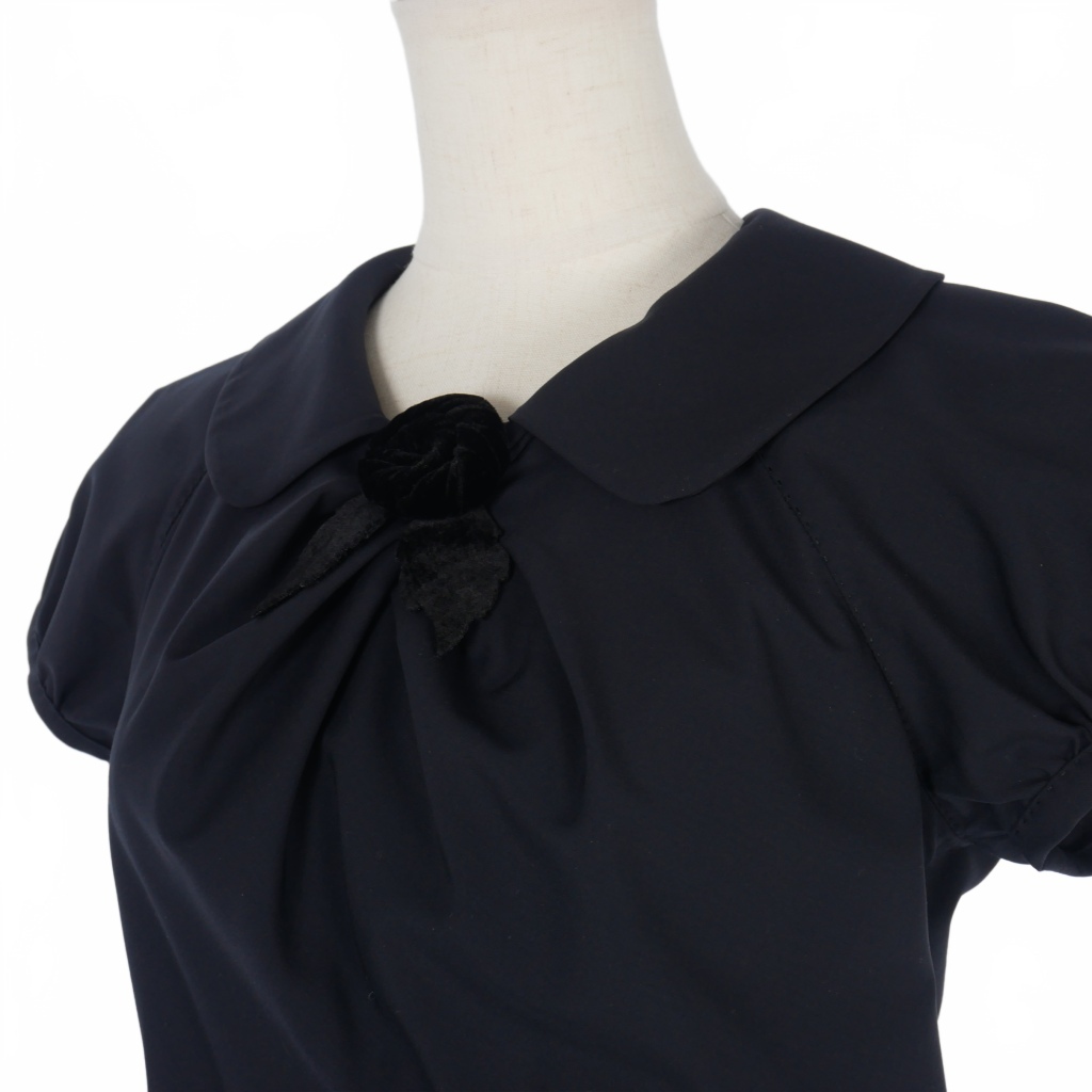ルイヴィトン LOUIS VUITTON 丸襟 フラワー装飾 ブラウス トップス 半袖 36 紺 ネイビー レディース
