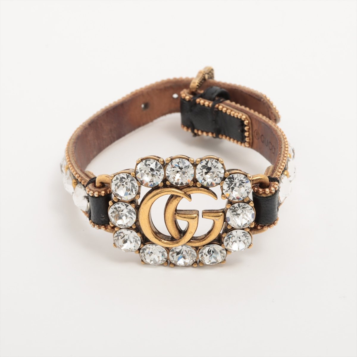 【鑑定済み】 GUCCI グッチ ダブルG レザー × ラインストーン × GP ブレスレット ゴールド イタリア製となります。