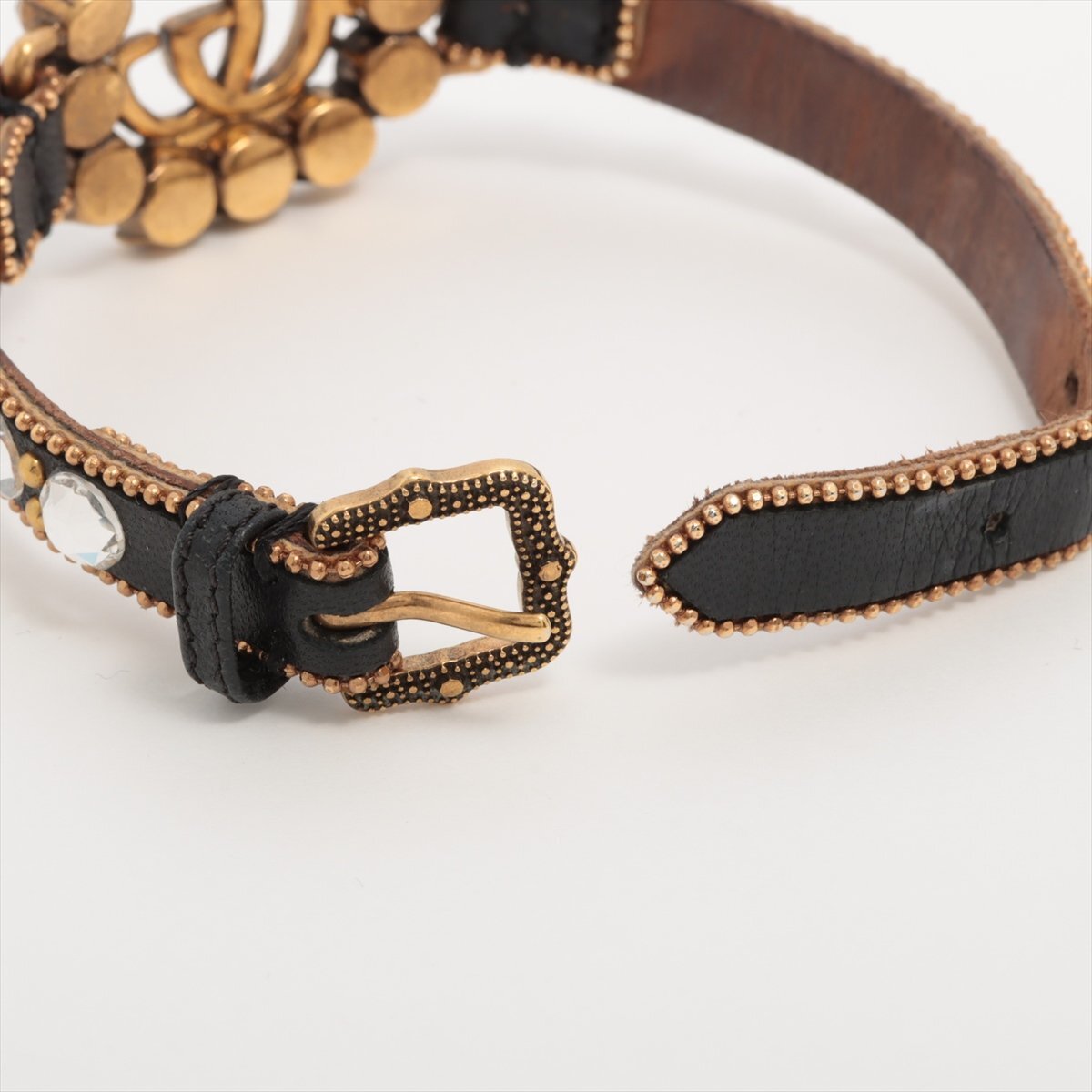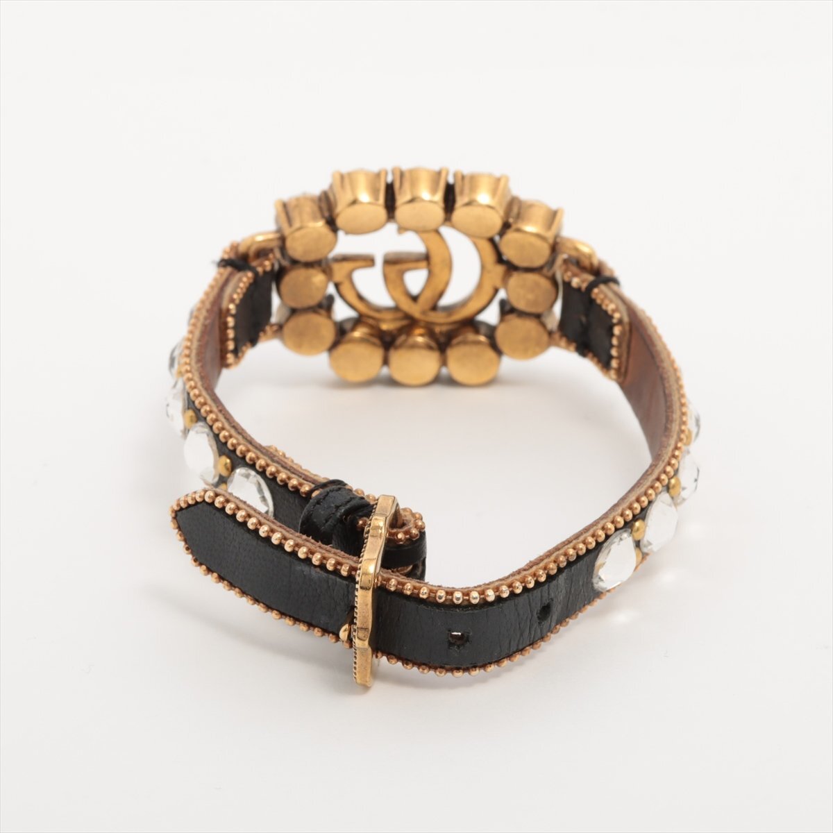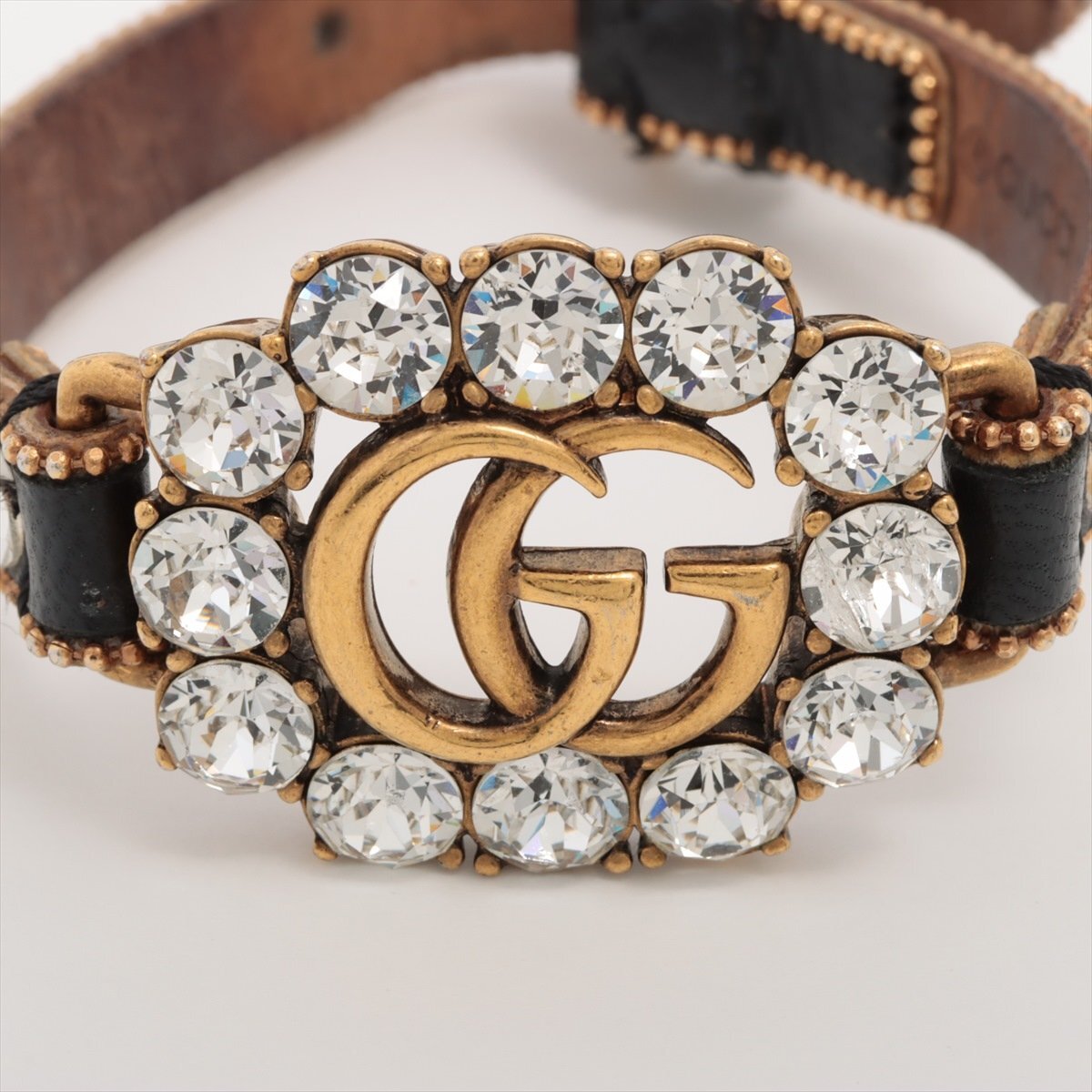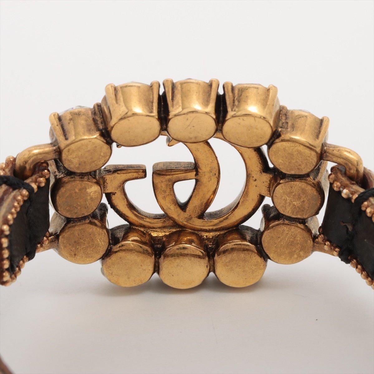 【鑑定済み】 GUCCI グッチ ダブルG レザー × ラインストーン × GP ブレスレット ゴールド イタリア製