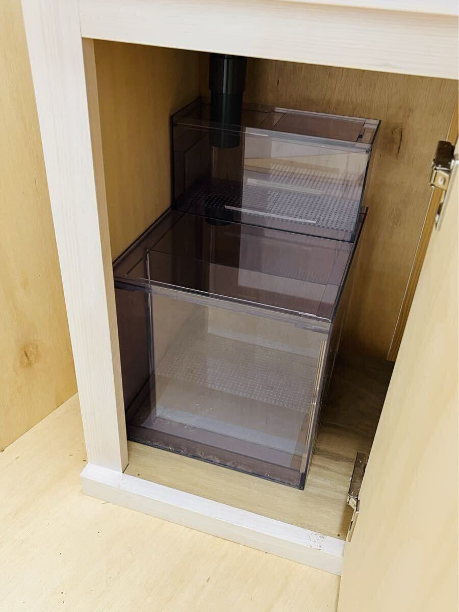 キャビは市販の組み立て式とは異なり木工職人が製作したしっかりとした作りの特注の完成タイプになります。