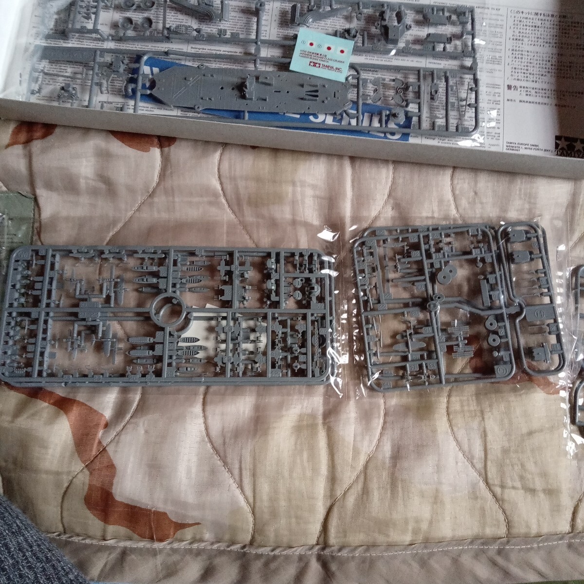長年積み重ねて保管していたので箱が少し変形しいますが、キットに破損はありません。