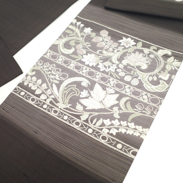 繊細なて刺繍が美しい、贅沢な カジュアル帯 でございます。