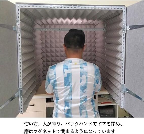 【サイズ】幅80×奥行100×高さ80cm。防音材、それは、スペースを占める大きなレコーディングスタジオの欠点を補い、内部スペースを拡大します。吸音効果のある二層構造の壁で、オンラインミーティングの際の音漏れや、周囲の音を軽減する効果があり、作業効率をアップさせてくれます。