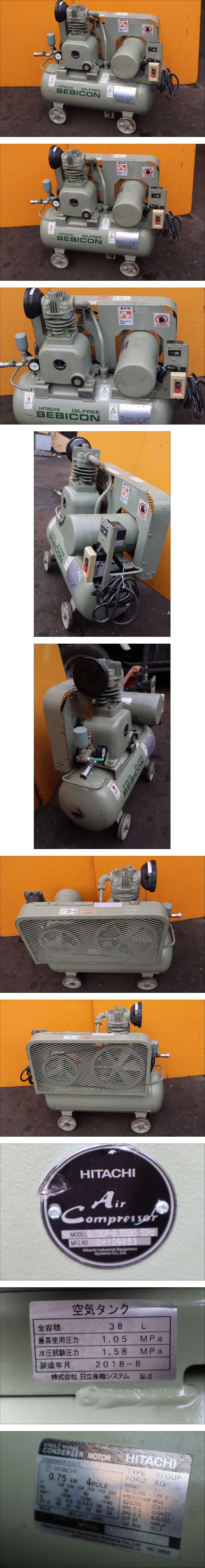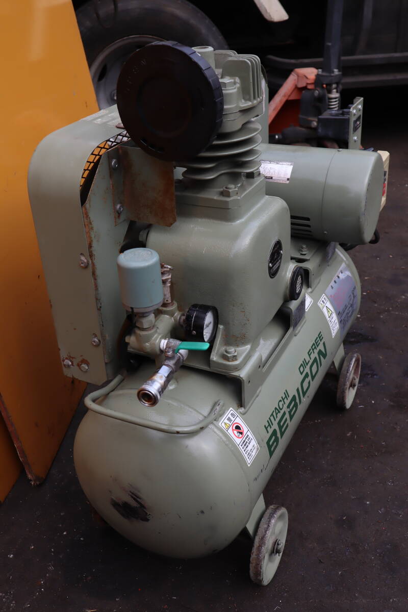 | 日立エアーコンプレッサー オイルフリー 0.750P-9.5GSB5 50Hz 0.75kW(1馬力) 100V 動作確認 即決価格 | ||
