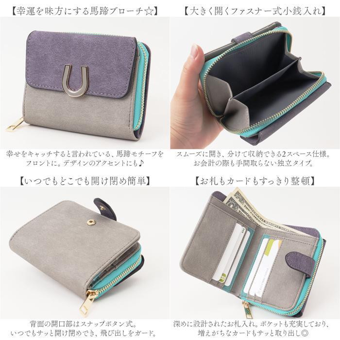 | 商品説明 | ・・【どんなシーンにも素敵にマッチ】 ・シンプルで上品な印象♪いつでも相棒として活躍 ・「2つ折り財布 ファスナー型小銭入れ」。 ・【スマートに見えてしっかり収納】 ・コンパクトに持ち歩ける2つ折り財布!収納力もあり、現金派にもキャッシュレス派にも。 ・【幸運を味方にする馬蹄ブローチ☆】 ・幸せをキャッチすると言われている、馬蹄モチーフをフロントに。デザインのアクセントにも♪ ・【大きく開くファスナー式小銭入れ】 ・スムーズに開き、分けて収納できる2スペース仕様。お会計の際も手間取らない独立タイプ。 ・【いつでもどこでも開け閉め簡単】 ・背面の開口部はスナップボタン式。いつでもサッと開け閉めでき、飛び出しをガード。 ・【お札もカードもすっきり整頓】 ・深めに設計されたお札入れ。ポケットも充実しており、増えがちなカードもサッと取り出し◎ ・【使用頻度の高いカードや大切な物を】 ・フロントポケットはスナップボタン式。よく使うカードはもちろん、チケットや免許証等を収納。 ・【面倒なお手入れいらずが嬉しい】 ・本革のような特別なお手入れは必要なく、汚れなどは拭き取るだけ。気軽に使えるアイテム。 ・【自分用にも贈り物にもおすすめ】 ・複数のカラーを使い、おしゃれに仕上げた折り財布。年代問わず使いやすいデザインが魅力◎ ・【ポケット仕様】 ・前面:スナップボタン式フラップポケット×1 ・中央:ファスナー式小銭入れ×1(内側2スーペース仕様) ・背面内側:お札入れ×1、カードポケット×6、フリーポケット×4 |