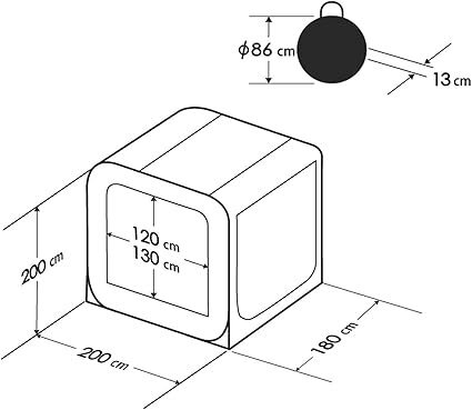 収納が簡単:最短5分で設置や収納が完了。スムーズな進行でアウトドア時間を思う存分確保することができます。コンパクト設計で持ち運べる収納袋入り。肩にかけて持ち運びいただけるサイズ感です。●「セット内容」本体テント*1、トップカバー*1、タープポール*2、インナーポール*2、防風ロープ*6、床釘*6、収納袋*1、
