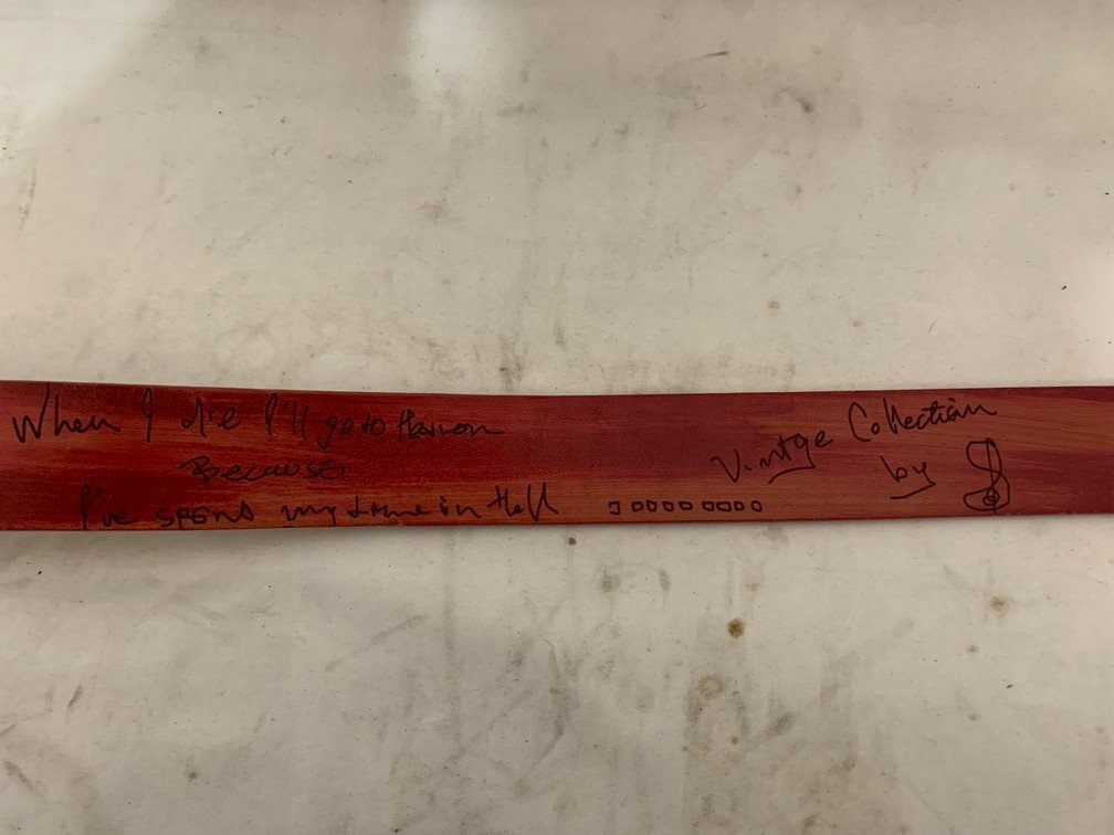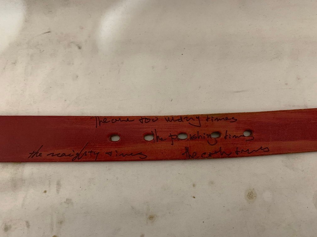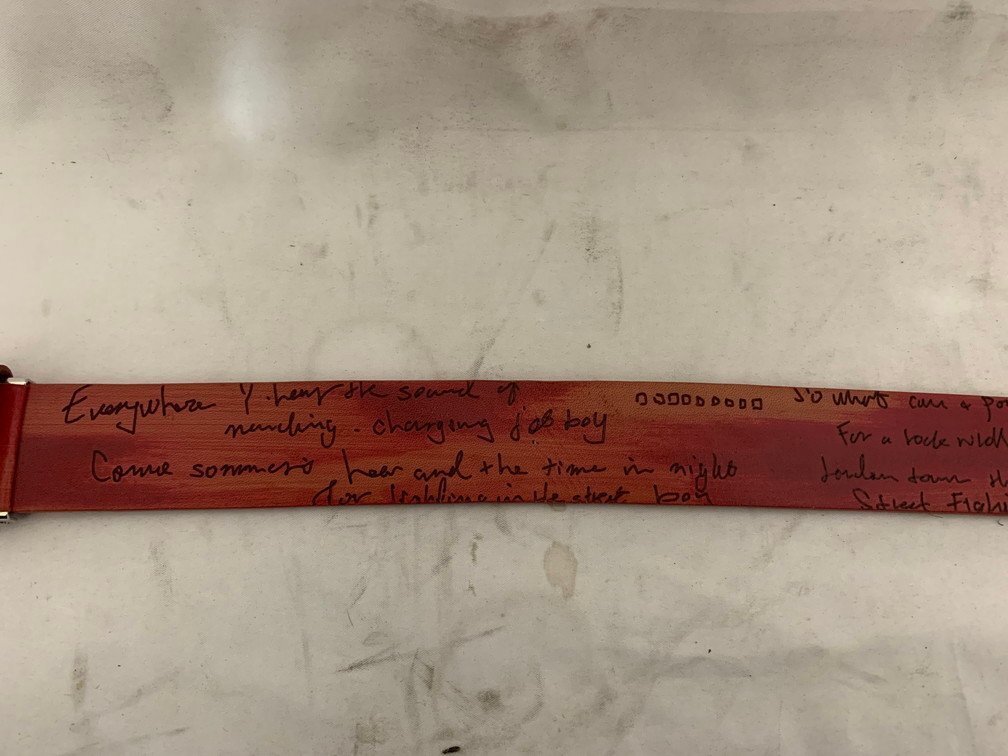 SADO 本革レザーベルト 日本製 文字柄です。 中古品。通常の使用に伴う状態。 |