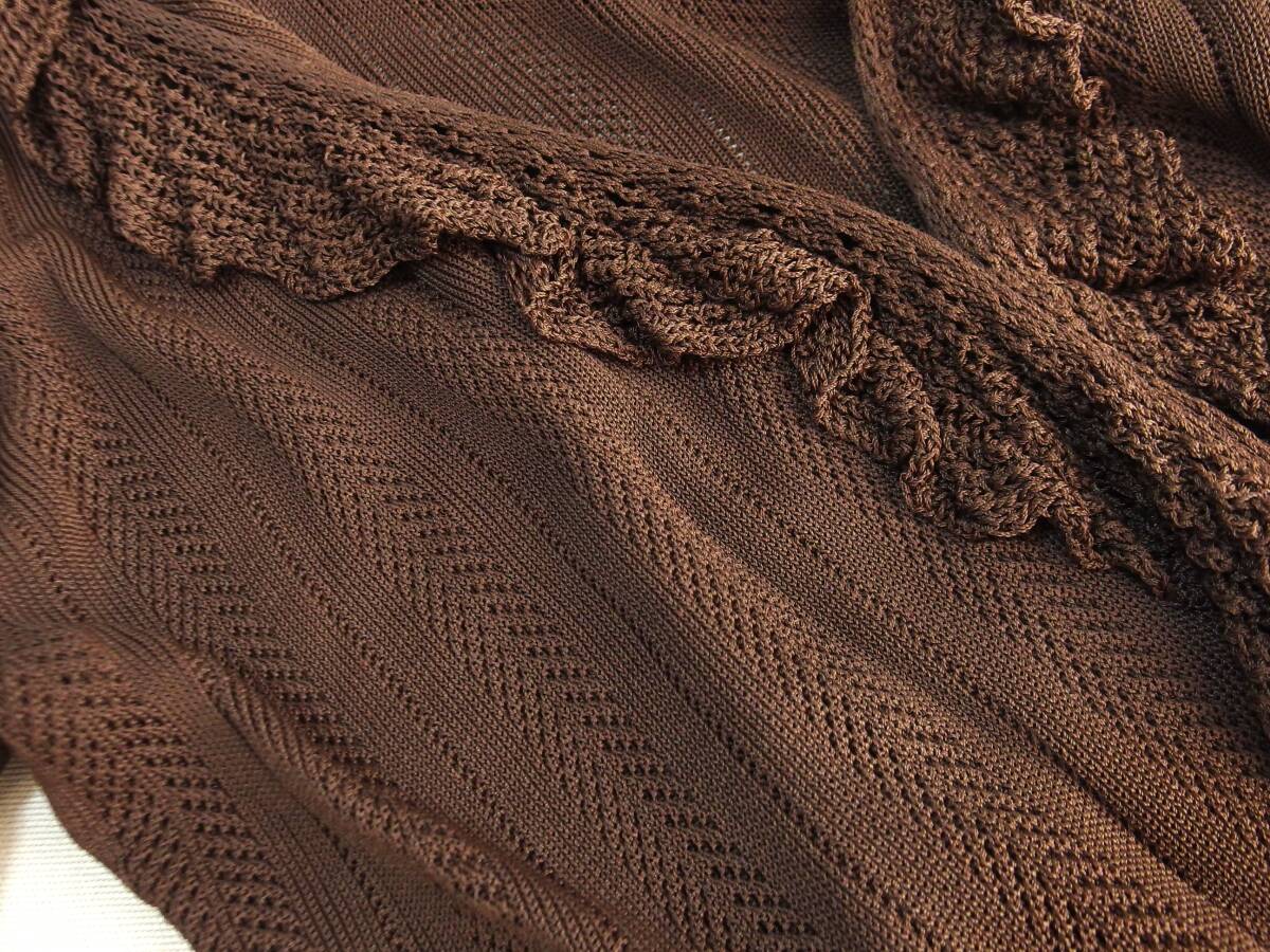 | ・商品説明・ サイズ: XS( 画像は7号トルソーに着せています。) 色: こげ茶(画像はわかりやすくするため少し明るく写しています。実際はダークチョコレートのような濃いこげ茶です。) ※平置きでの採寸です。 肩幅 34cm。(両肩を直線で結んだ線)。 身幅 41.5cm。(両脇を直線で結んだ線)。 袖丈 60cm。(肩~袖先) 着丈 63cm。(背中心~裾) 全体的なコンディションは良好で、1~2回着用程度の、きれいなお品になります。 特に記載するダメージはありません。 比翼仕立てのボタン7つ留めです。 トロミ感のあるレーヨンカーディガンです。 ・コメント・ 他にも出品しておりますのでご覧ください。 |