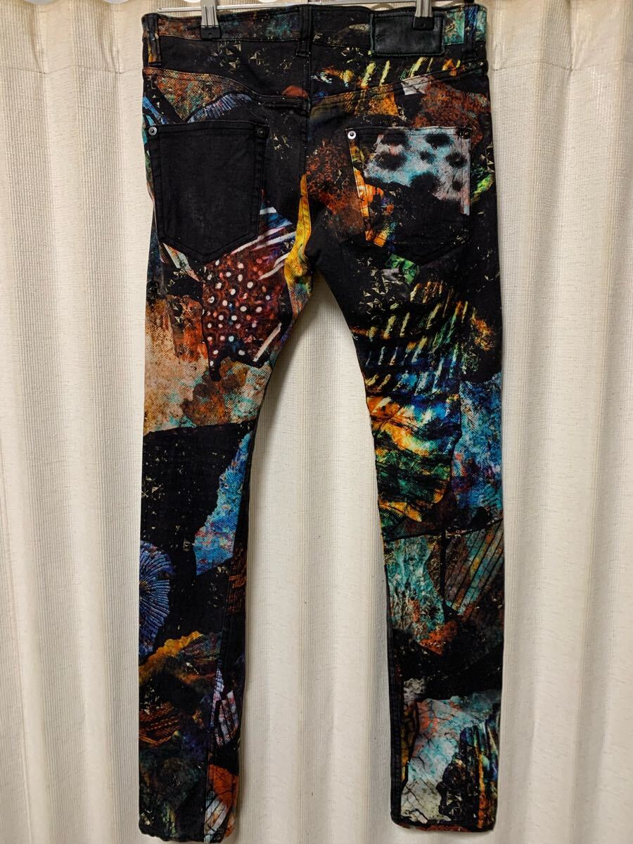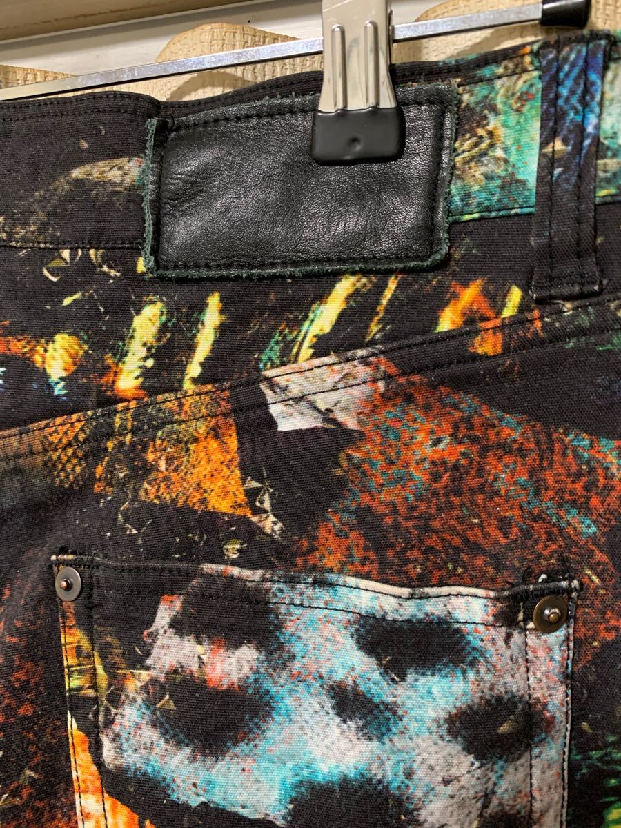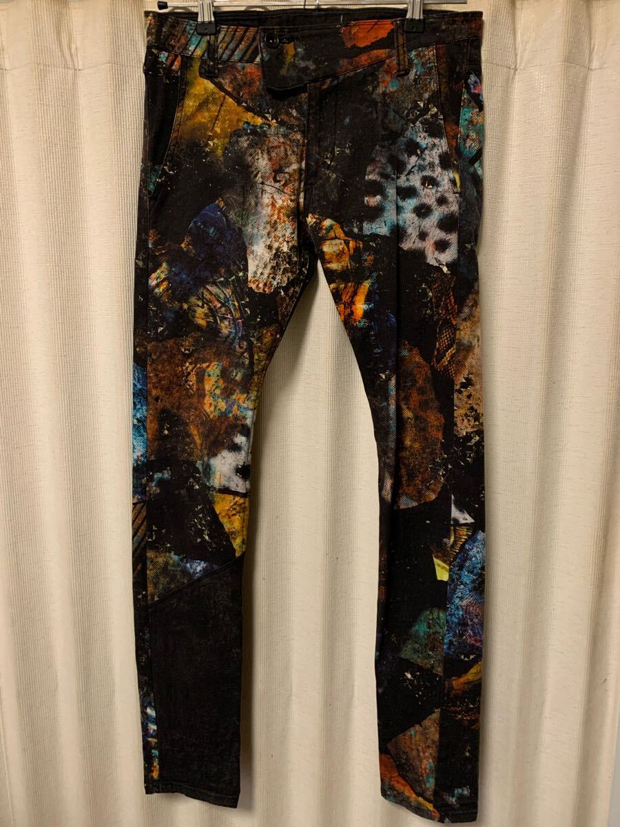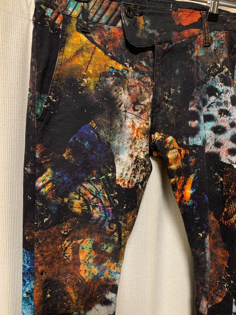 メンヒムならではの表情、匂いの感じられるインクジェットプリントコットンスキニーパンツ。