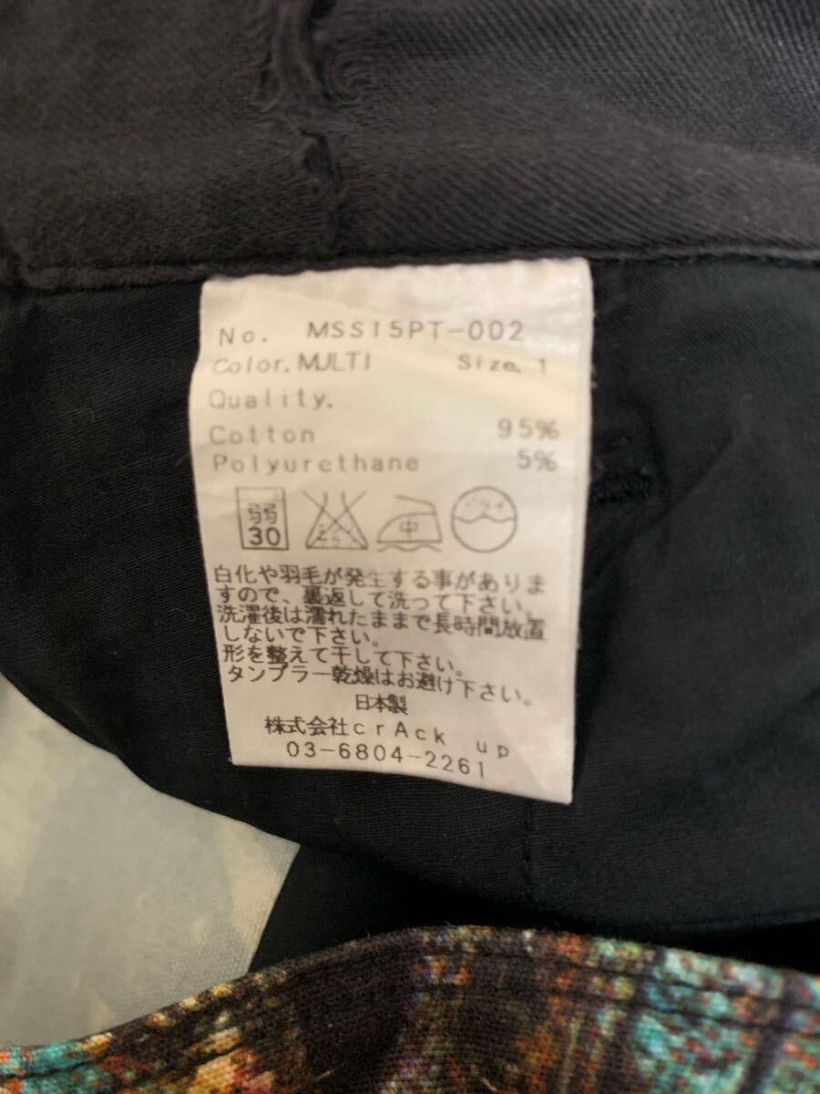 サイズ:1(ウエスト約39㎝ 股上約25㎝ 股下約75㎝ 裾幅約14㎝ 腿幅約20㎝)平置き素人採寸の為多少の誤差はご了承願います。