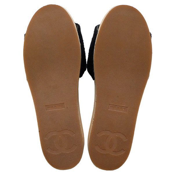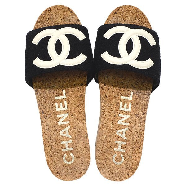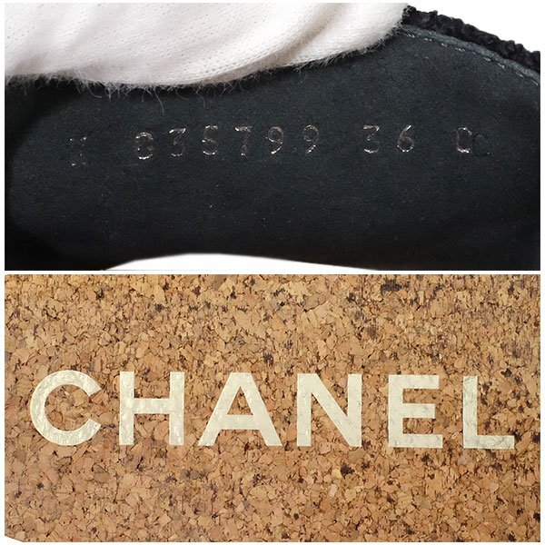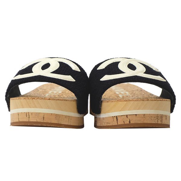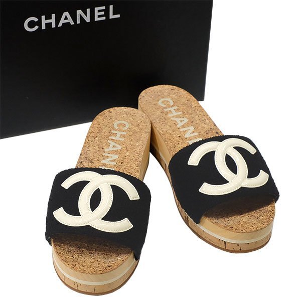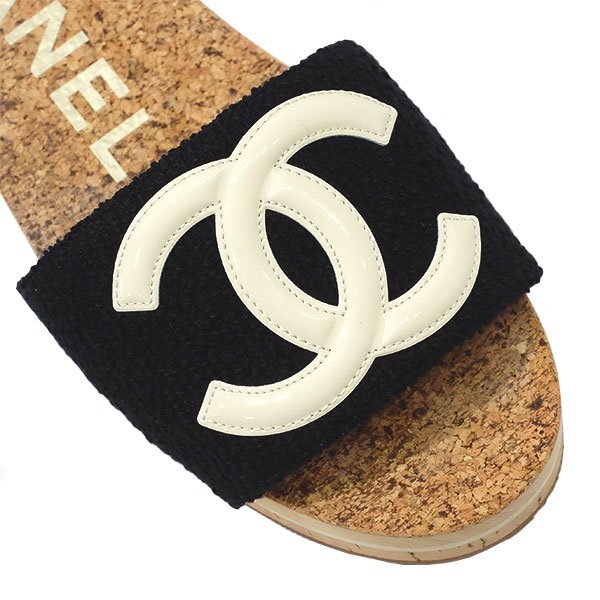 送料無料 本物 注目 CHANEL シャネル ミュール G35799 ツイード×パテントカーフスキン 20P ブラック×ベージュ 36 ウッドソール コルク