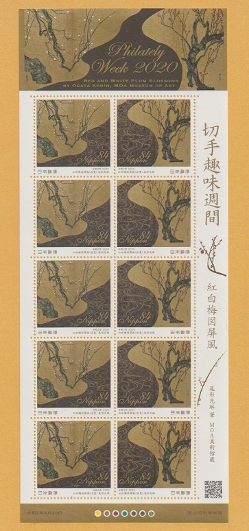 ○【記念切手】切手趣味週間《84円》紅白梅図屏風 切手シート 2020年 未使用
