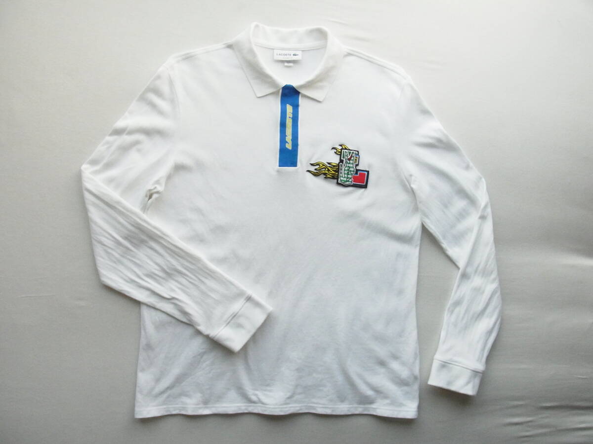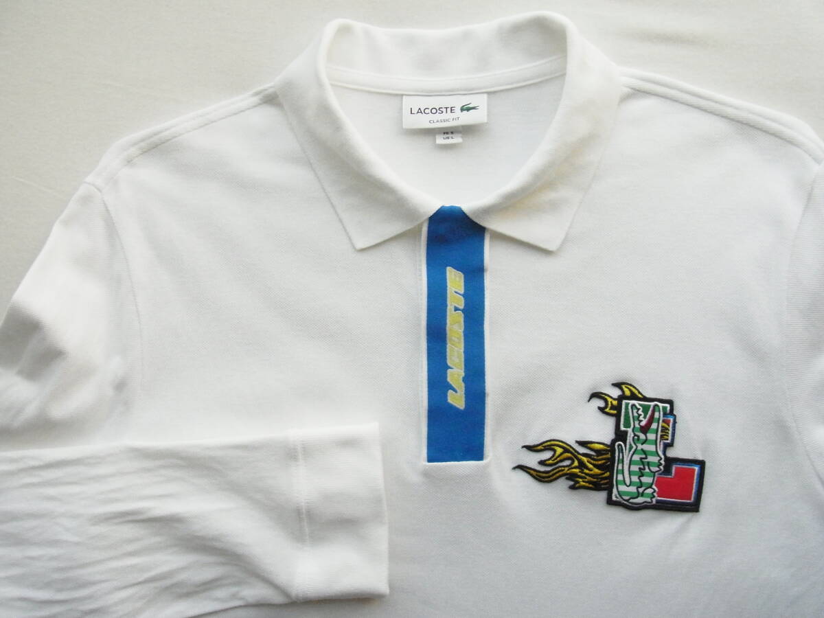 LACOSTE ラコステ フロント比翼仕様 ワッペン付き ポロシャツ サイズ 5 ホワイト