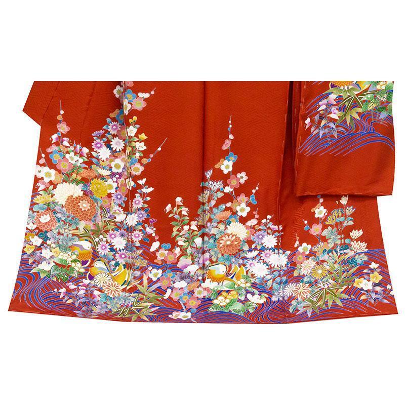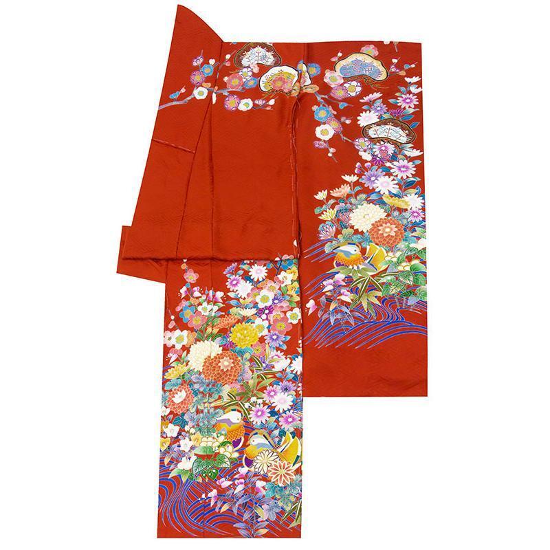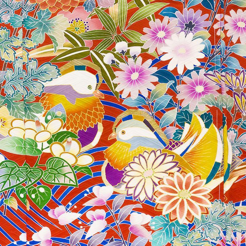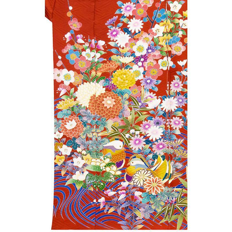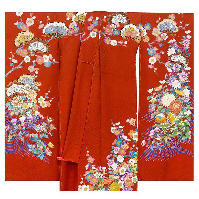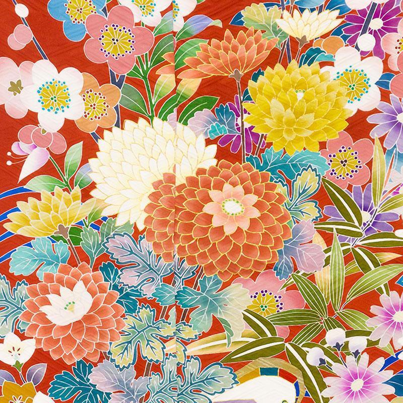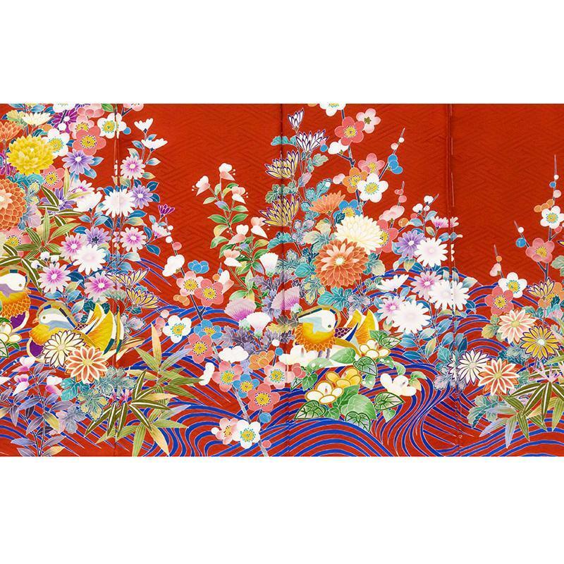 | ★品質・詳細 | ○地色 【こちらの地色は赤色系です。】 ○絹織物 ○新品・未仕立の特撰振袖の仮絵羽です。 ○最高級ちりめん地 ○参考上代 980,000円 |