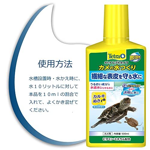 「Tetra テトラ レプトセイフ カメの水つくり 250ml 水質調整剤 アクアリウム かめ 亀 粘膜保護」▼4004218298002▼(商品説明)・‐ 77085・カルキ抜き+うるおい成分で、水道水からカメの繊細な表皮を守ります。・濾過バクテリアを活性化し、透明な水に近づけます。・カルキ抜き+重金属無害化・ビタミン・ミネラル配合・商品ラインナップは、250mlと500ml説明 商品紹介 商品紹介 ●繊細な表皮を守る水に●うるおい成分で水道水から守る水に●濾過バクテリア活性化●透明な水に●カルキ抜き+重金属無害化●ビタミン・ミネラル配合●カメ用 使用方法 水槽時・水換え時に、水10Lに対して本品を10mlの割合で入れて、よくかき混ぜてください。 使用方法 水槽時・水換え時に、水10Lに対して本品を10mlの割合で入れて、よくかき混ぜてください。