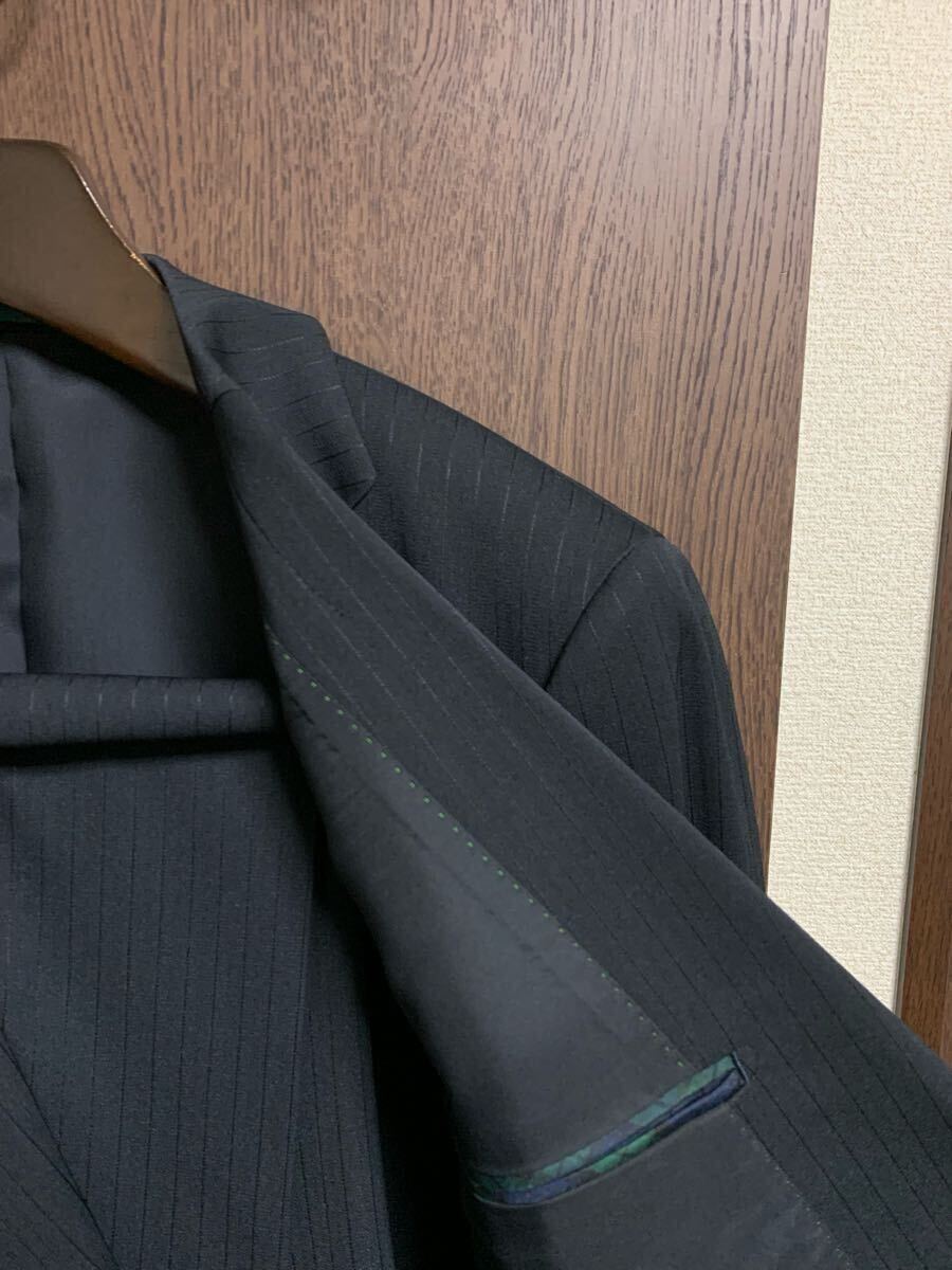 品質の良い無地調ブラックシャドーストライプシングルスーツ!