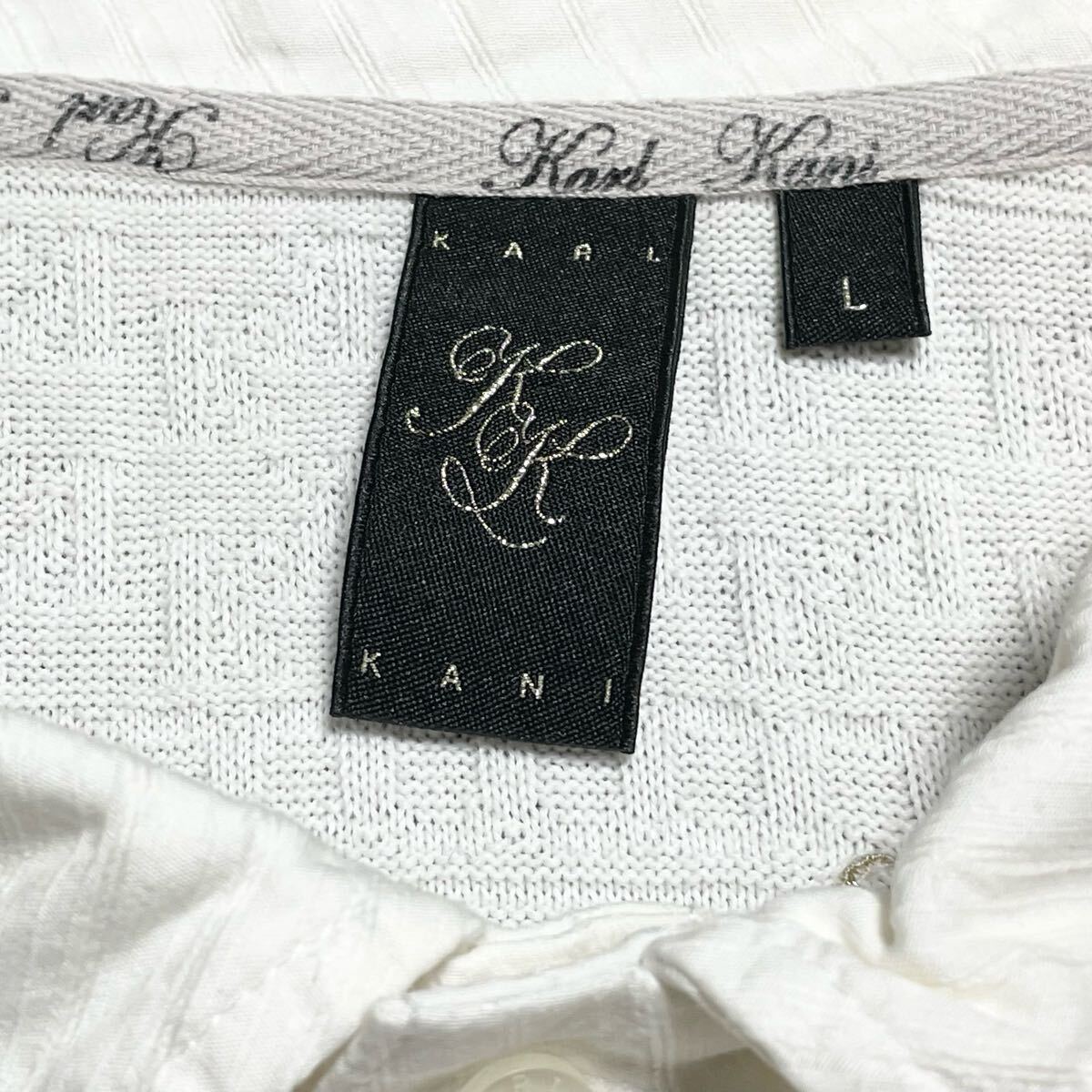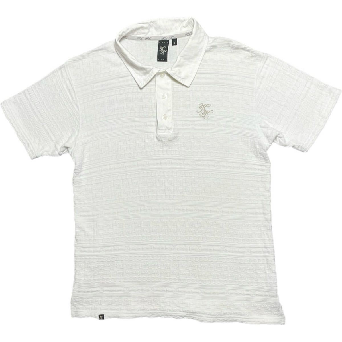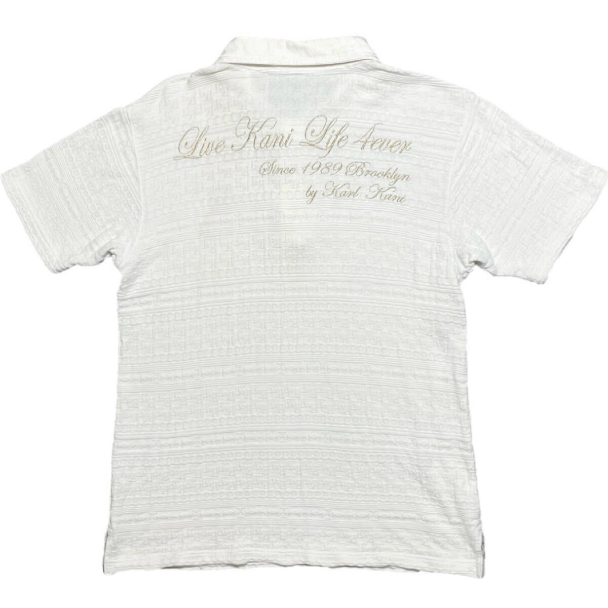 こちらはカールカナイのブランドロゴが織り柄になっているニットポロシャツです。