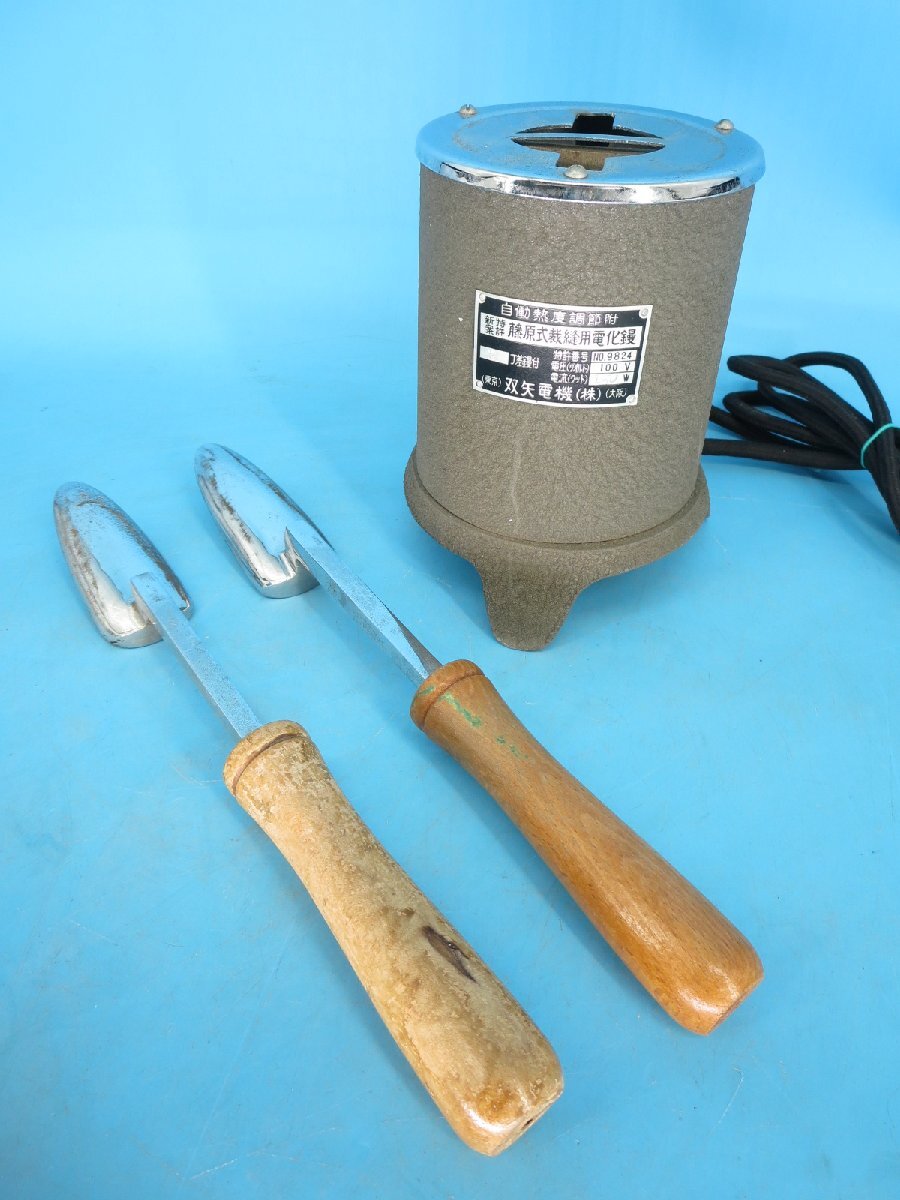 双矢電機 自動熱度調節附 藤原式 裁縫用 電化鏝 和洋裁用 アイロン 電気コテ 2丁立て コテ 鏝  現状品 梱包方法B (中 GTE11