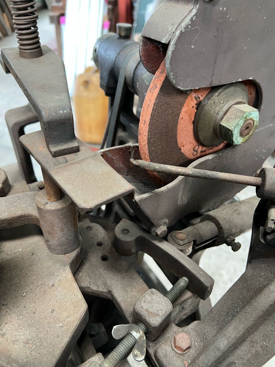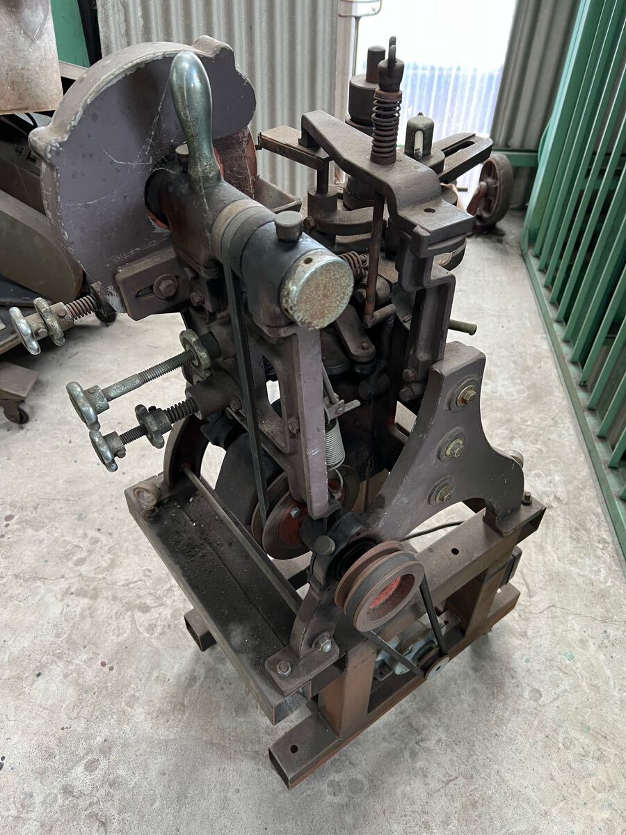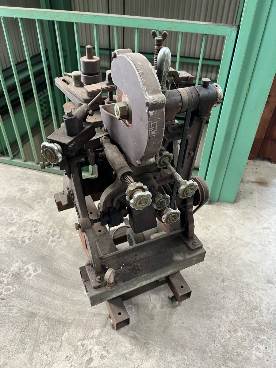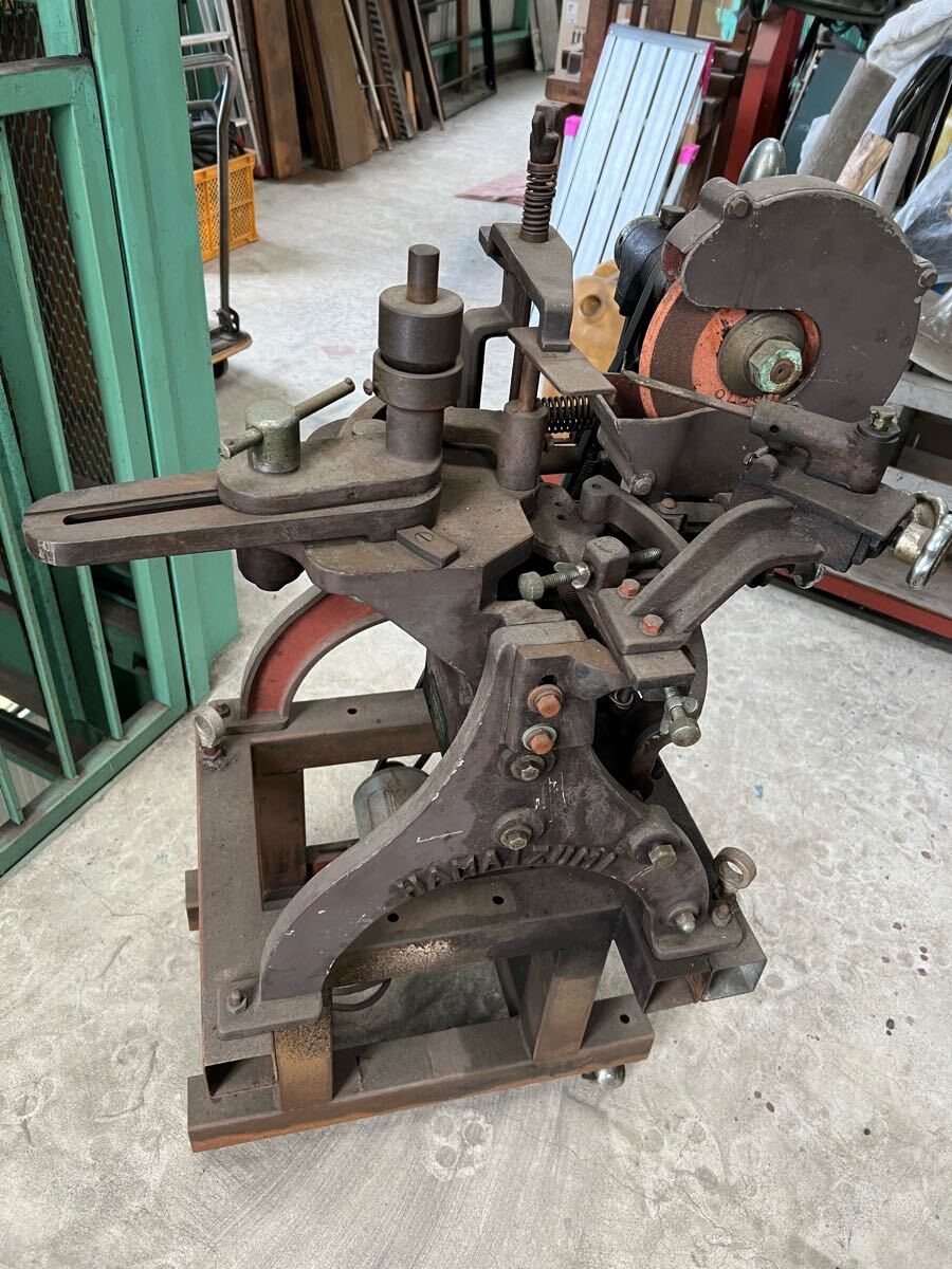 丸鋸の刃を1枚1枚自動で送りながら、砥石が自動で往復して目立てをする機械です。メーカーは東海熱処理株式会社です。200V. 200Wのモーター(組み込み済み)で駆動します。引取り限定でお願いします。