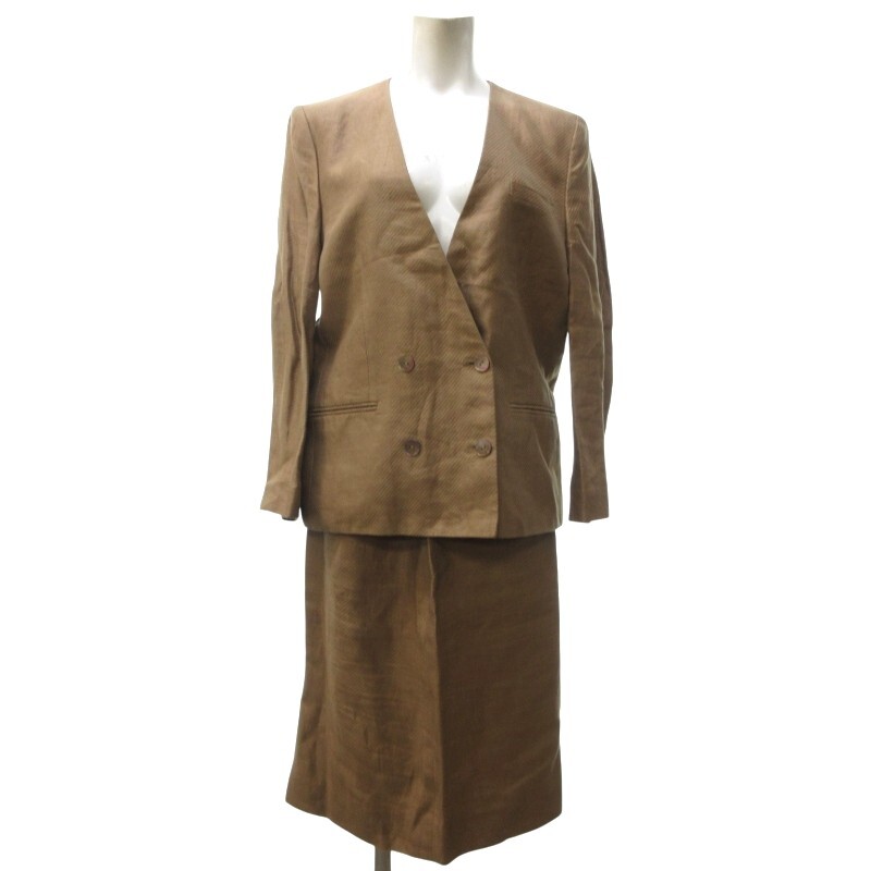 バーバリーズ Burberrys 美品 白タグ セットアップ 上下 スーツ ノーカラージャケット タイトスカート ダブルボタン ミドル丈 茶