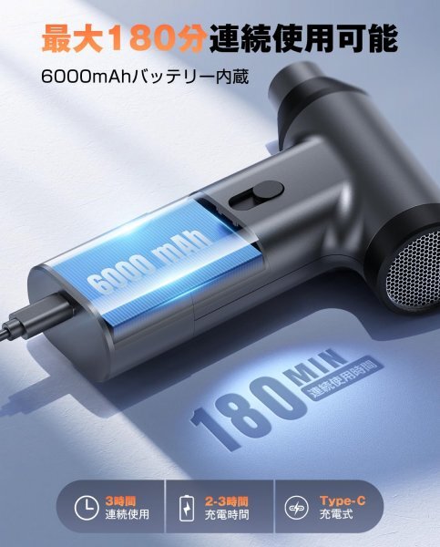 - 【バッテリー】内蔵6000mAhバッテリーで充電時間は3時間以内、最小風力で最大3時間使用可能。