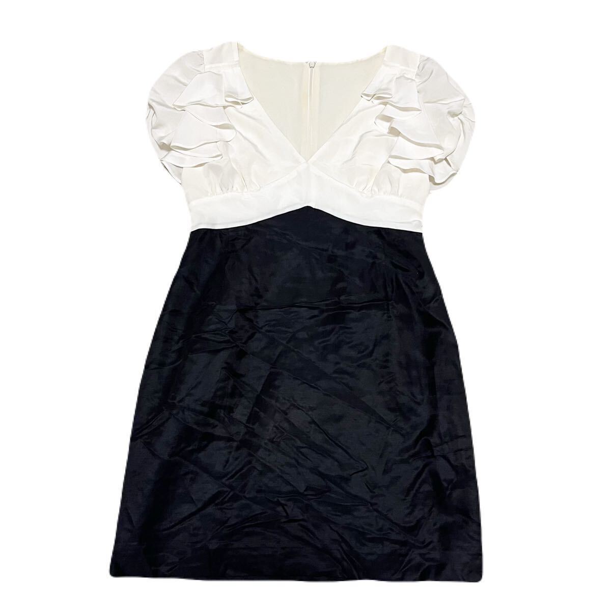 和752★ Chesty チェスティ フリルショートスリーブ タイトワンピース Vネック 1 ホワイト ブラック レディース