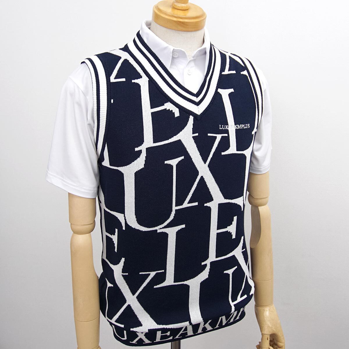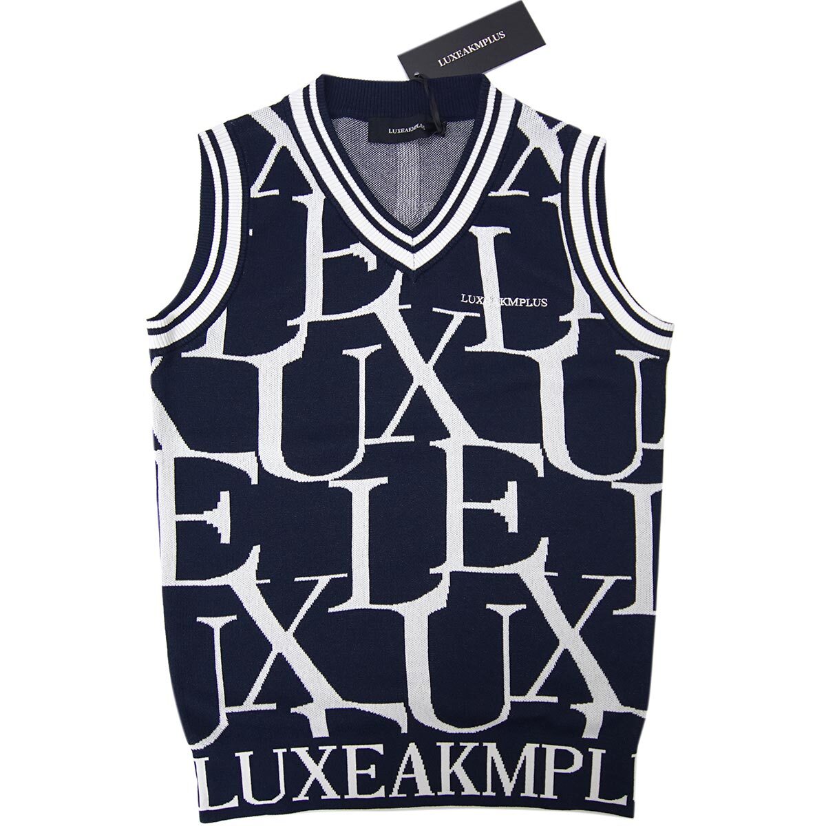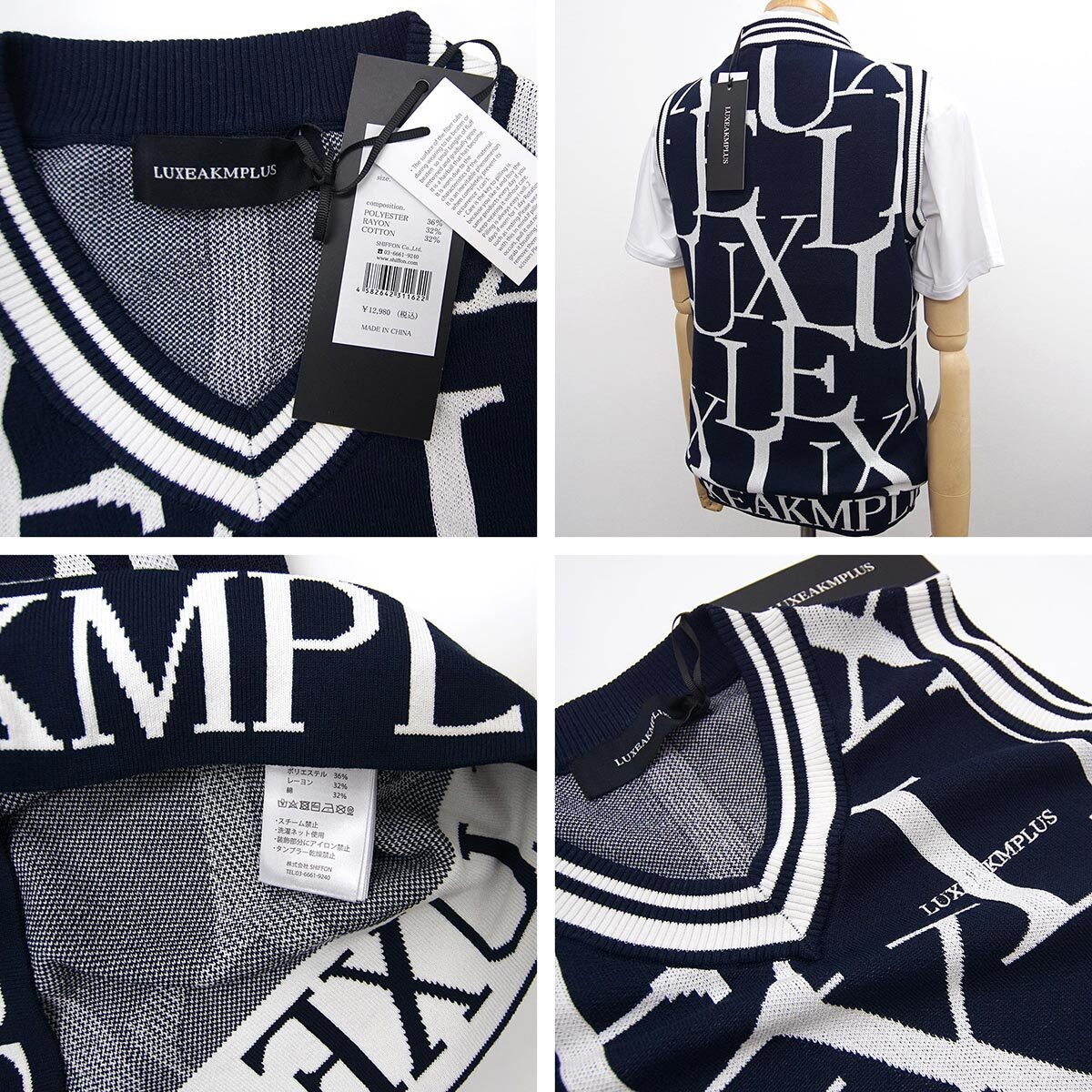[新品]定価12980円 リュクス エイケイエム プラス【XL】雑誌LEON レオン掲載 ゴルフ ニットベスト 洗濯可能 LUXE AKM PLUS 紺【送料185円】